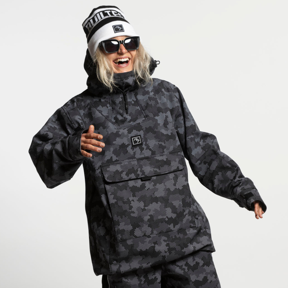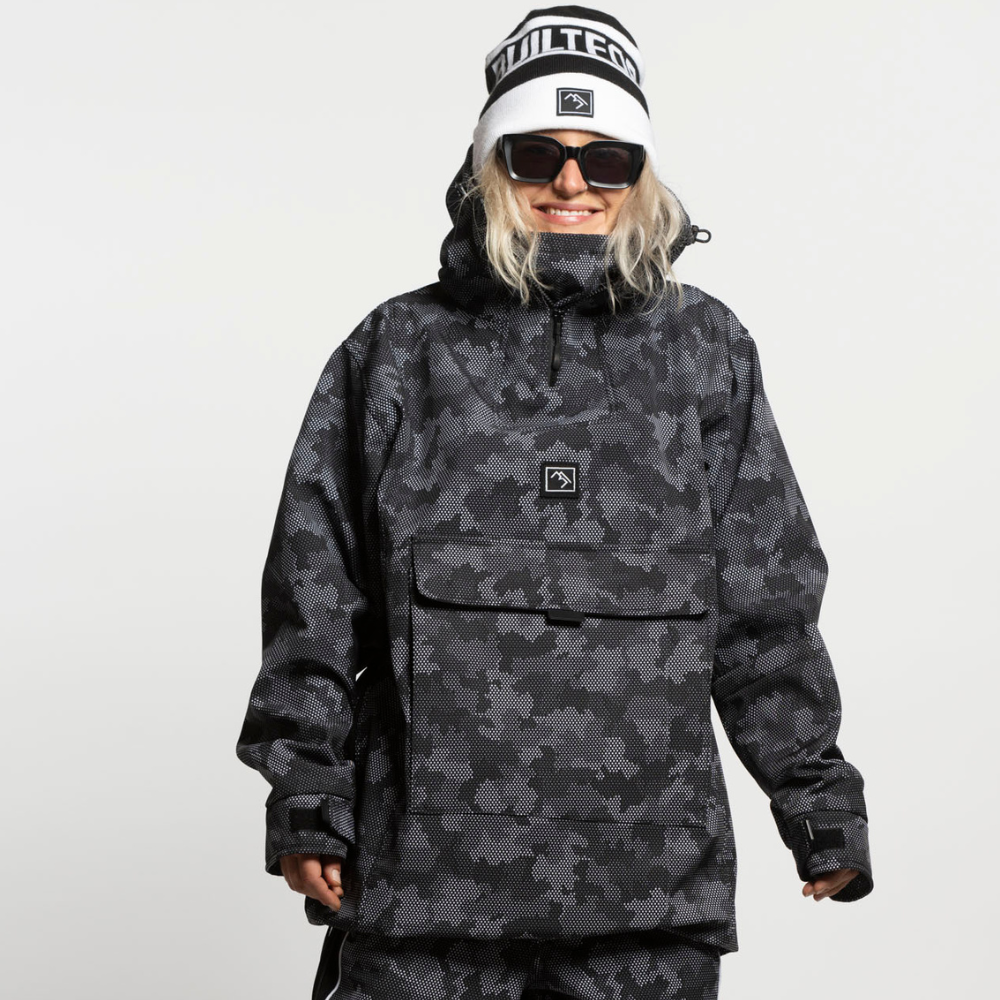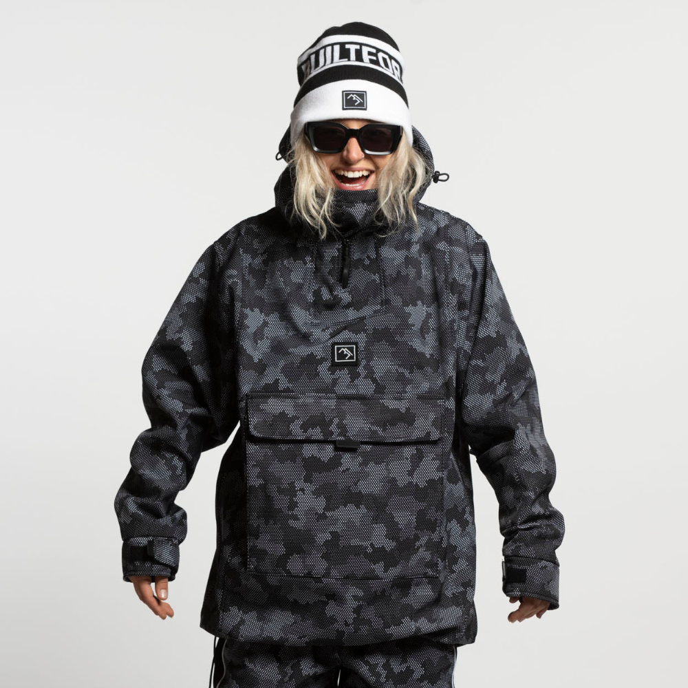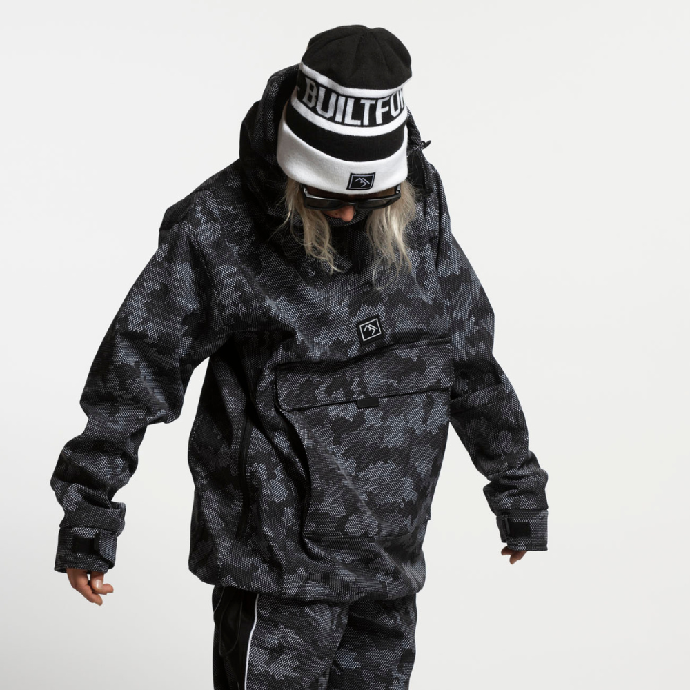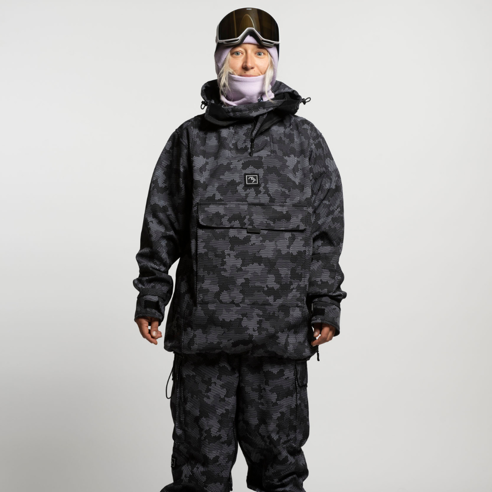 The Brethren Apparel Access Anorak Jacket Black Camo is a great must-have for the very coldest days. The wrist straps on the sleeve cuffs keep the cold and snow out of your sleeves. With a pop closure on the access zipper, and a great Roo pocket with both top and side entry, this jacket is a great addition.