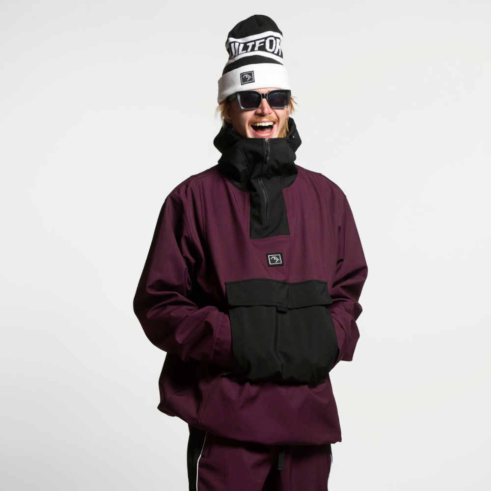 The Brethren Apparel Access Anorak Jacket Malbec/ Black is a great must-have for the very coldest days. The wrist straps on the sleeve cuffs keep the cold and snow out of your sleeves. With a pop closure on the access zipper, and a great Roo pocket with both top and side entry, this jacket is a great addition.