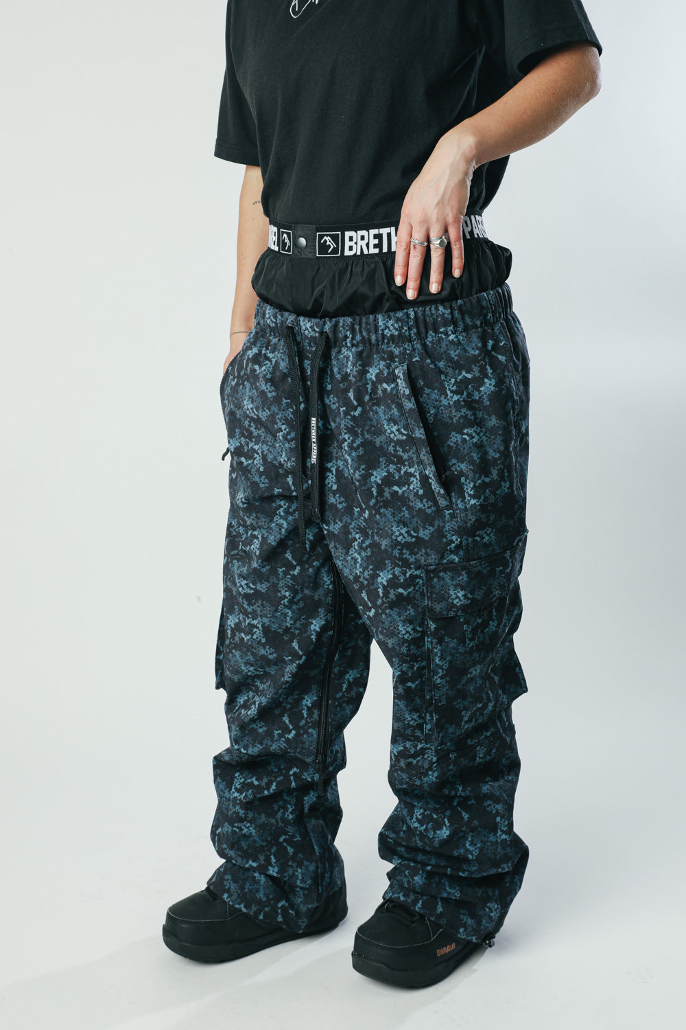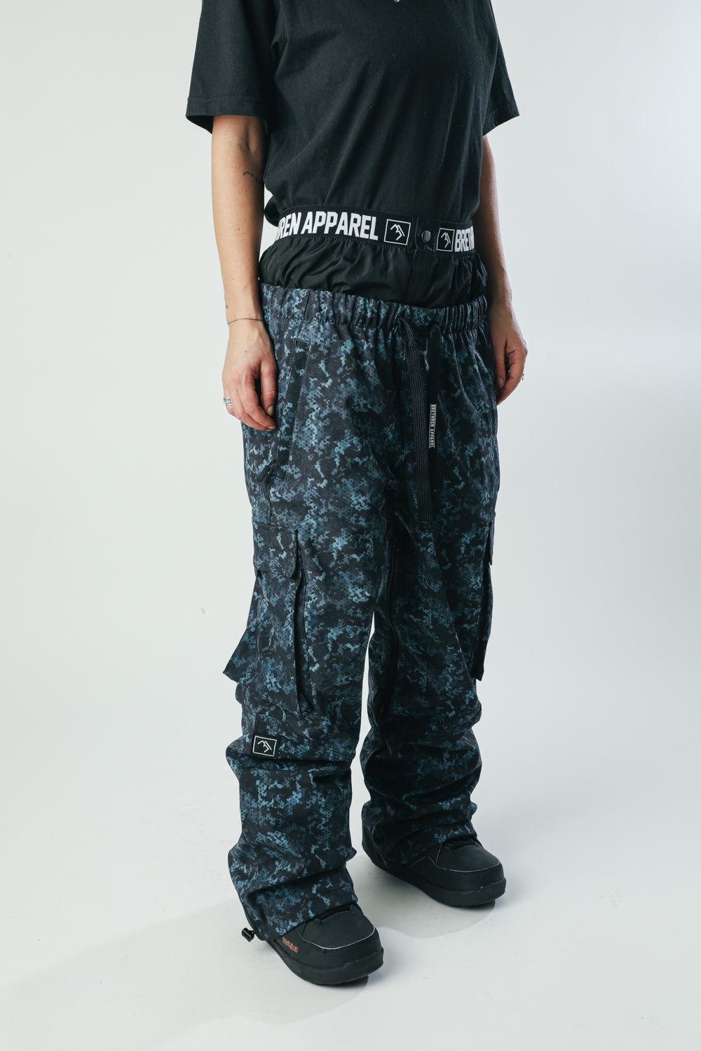 The Brethren Apparel Access Cargo Pants Crypto Camo is a waterproof snowboard pant styled like your favorite sweatpants. The most comfortable technical under layer available. You might even keep them on after the descent.
