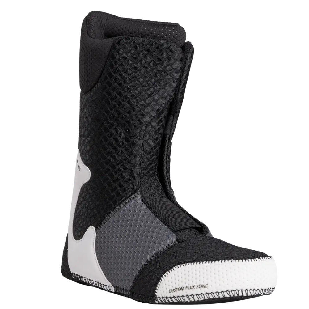 7/10- Nidecker Altai Black snowboard boot has a stiff flex. This shoe provides optimal support while snowboarding and is designed for those who like to race down the mountain at high speeds. With a rigid construction, this snowboard boot provides maximum power transfer and precision.