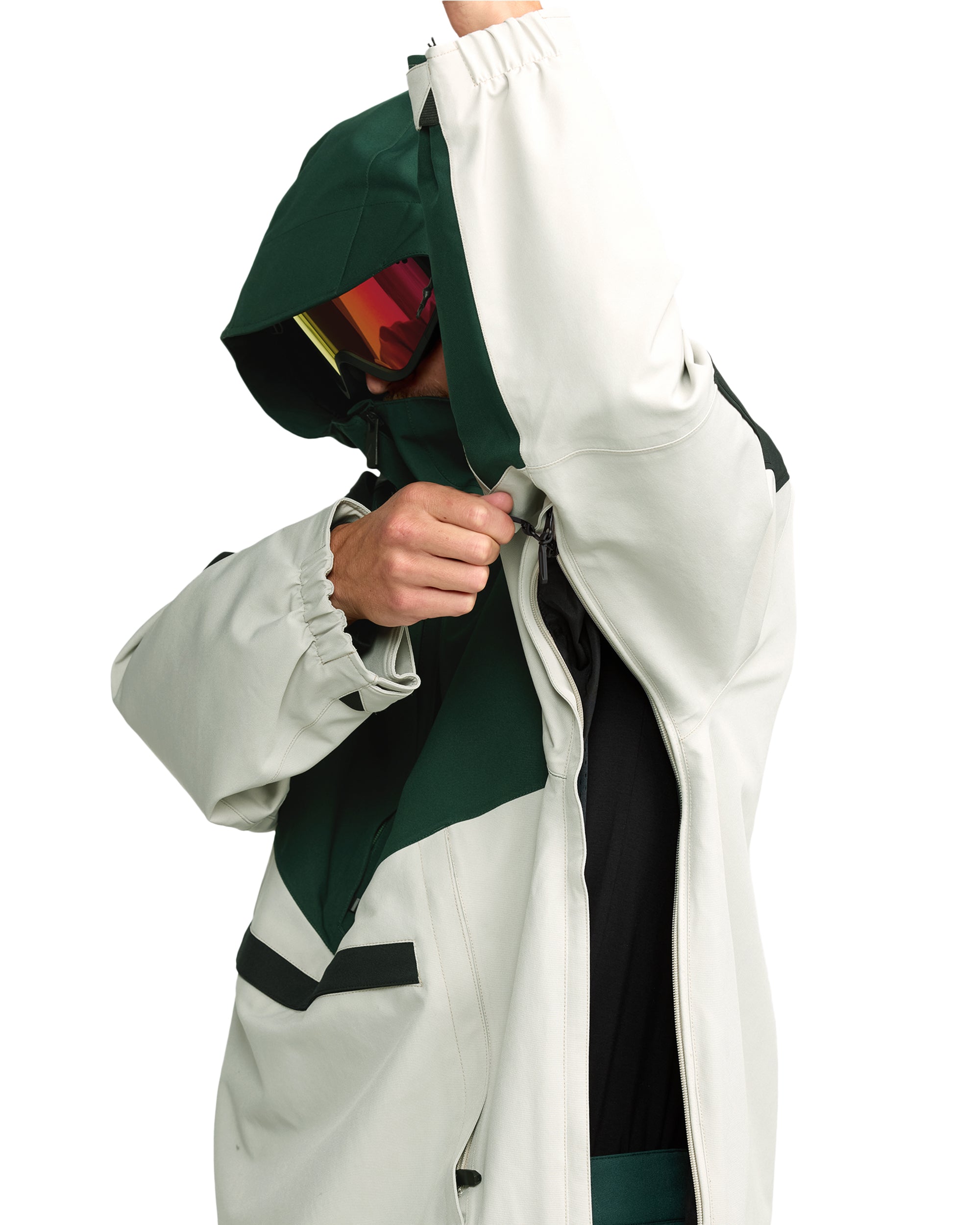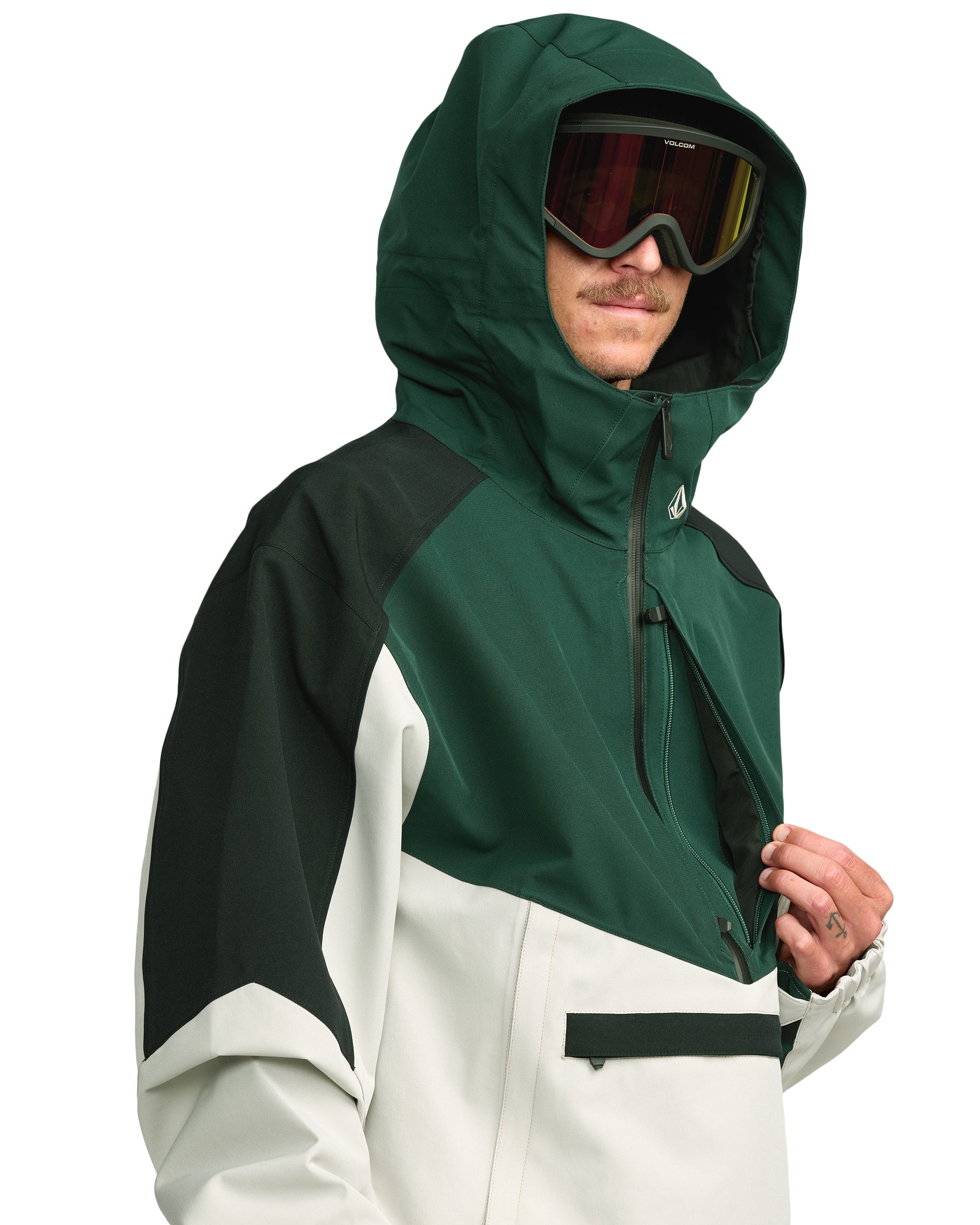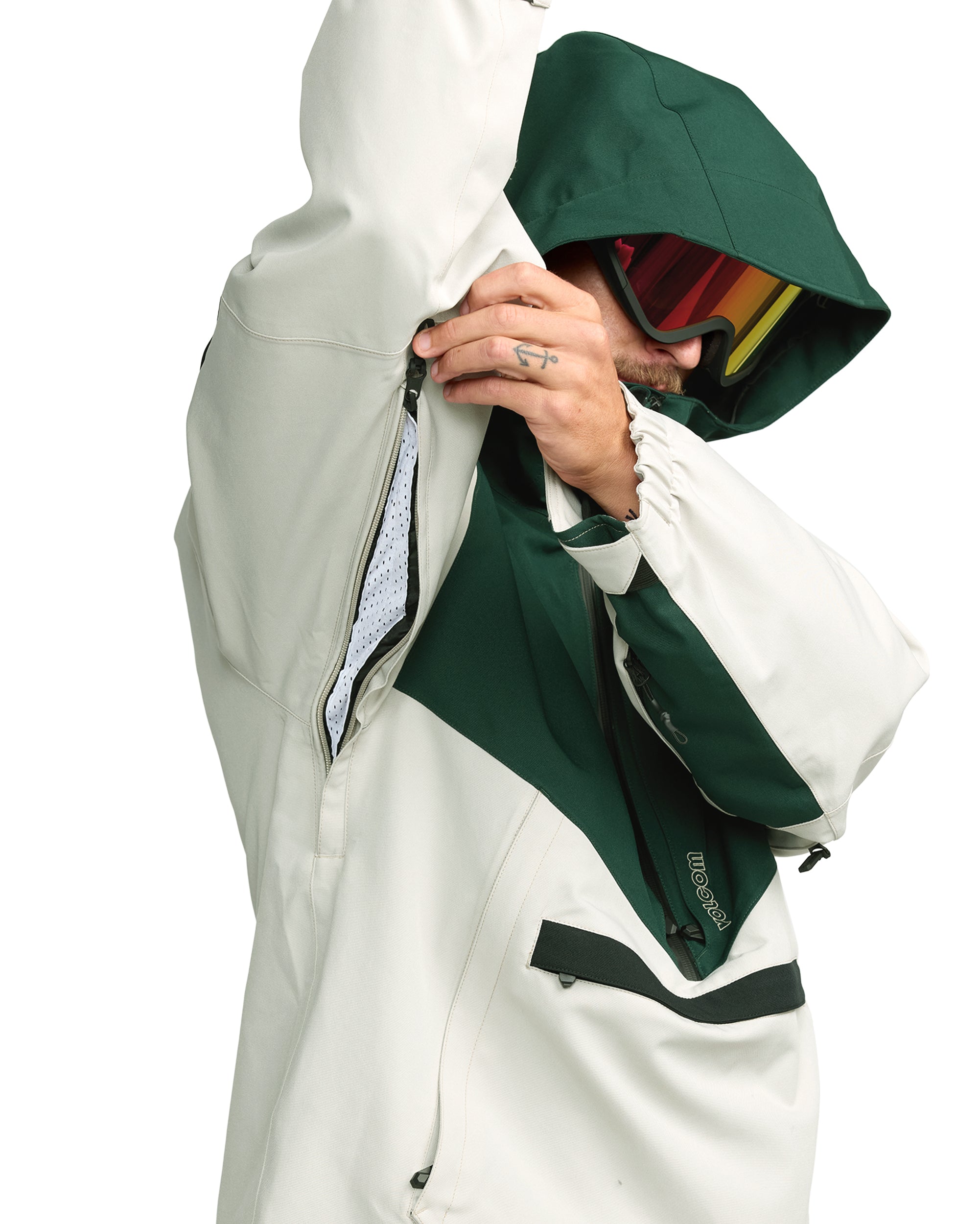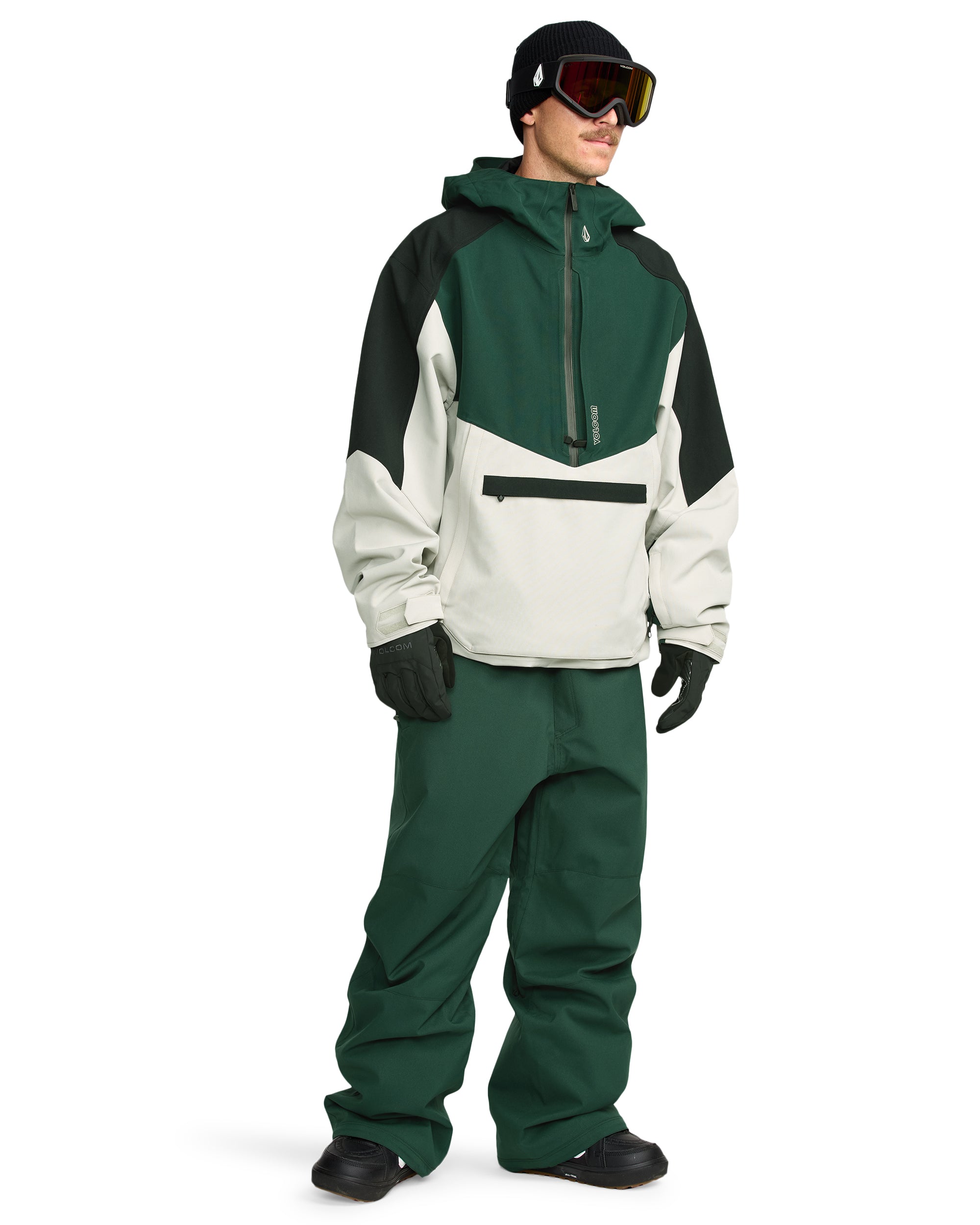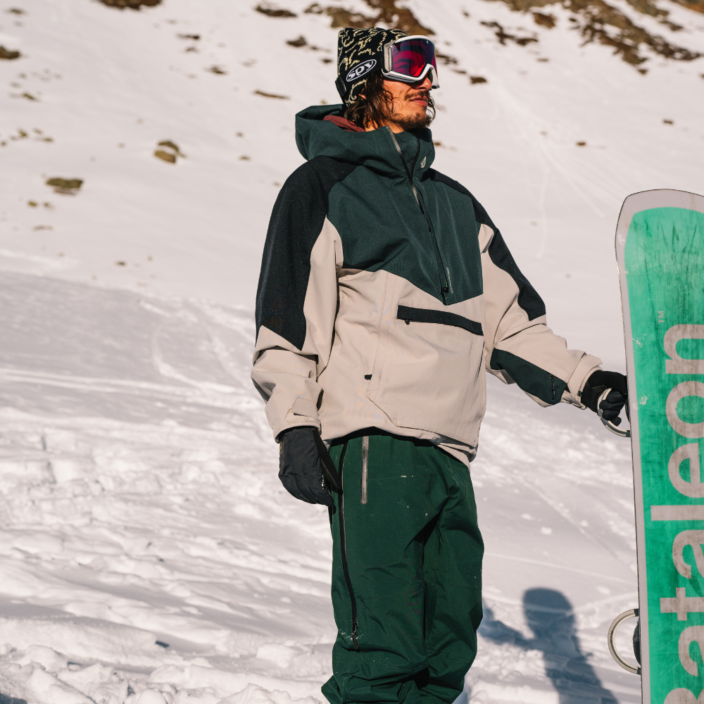 The Volcom Brighton Pullover - Stone combines a retro pullover look with functional details for long days in the snow. With an impressive 15K waterproof rating and the breathable V-Science lining system, this anorak offers not only style but also optimal performance. The Brighton features vents, a handy media storage pocket and the Zip Tech® system that allows you to zipper jacket and pants together, perfect for deep powder sessions. With fully taped seams, YKK® AquaGuard® zippers and an adjustable powder skirt, this jacket stays dry and comfortable in all conditions.