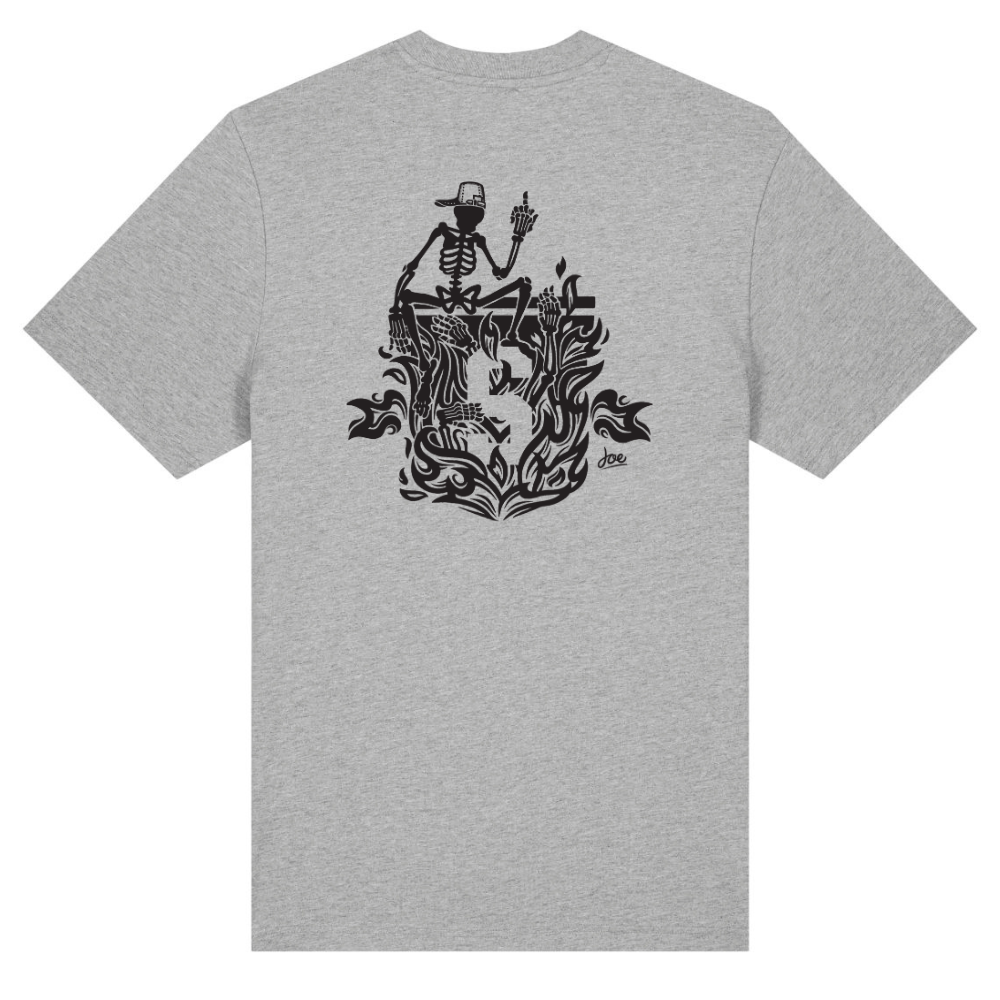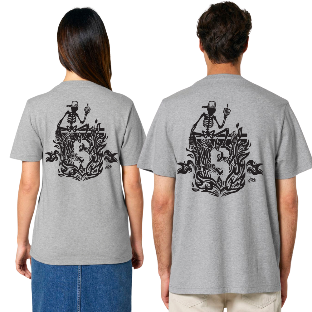 The Burning man t-shirt from Joe Robinson's exclusive limited edition collection is an explosion of energy and passion. The iconic design with the burning skull on the front and the Burning Man on the back is a bold statement for anyone who does not hide their fervor. This t-shirt is for the rebels, the daredevils and those who have no fear of letting their passion burn.
