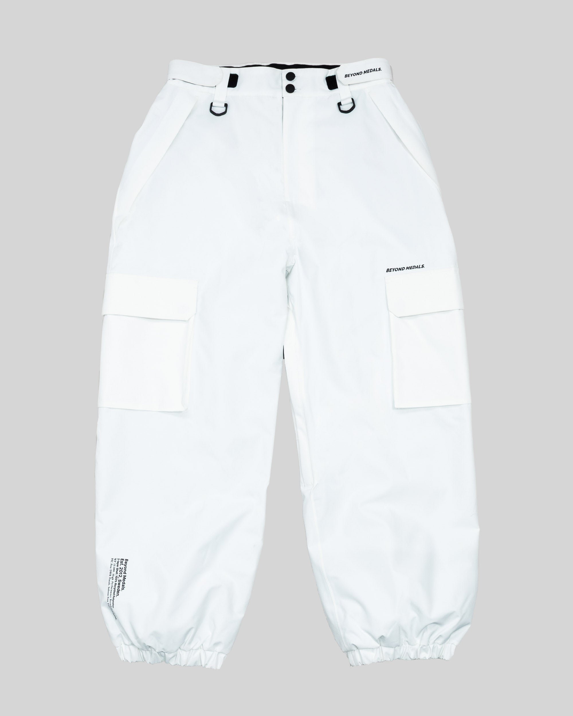 The Beyond Medals Cargo Pants 2L White is one of our most popular styles this season. It is a perfect 2-layered, all-season pant with the classic cargo look and all the technology you need for a great day in the mountains. Thanks to the lightweight 2-way stretch and pleasant loose fit, these pants are wonderfully comfortable. With a water repellency of 15k, fully taped seams and bottom cuffs, you're guaranteed to stay dry. Looks good, feels good.