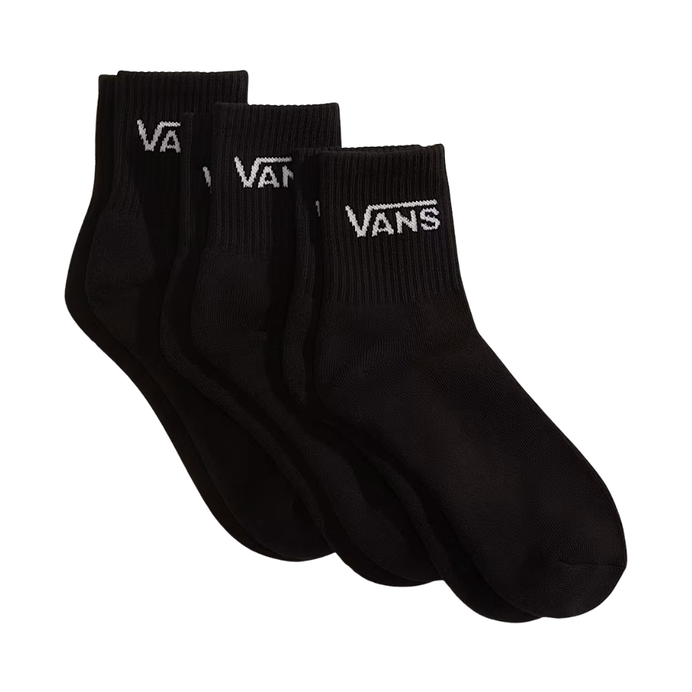 The Vans Classic Half Crew 3 Pack Socks Black are your daily go-to's with a sleek, all-black look. Subtle, comfy and always ready for action - from skatepark to street.