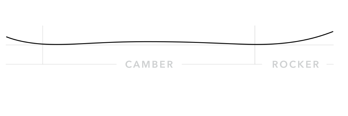 Float Camber - camber underfoot with early rise/rocker in the nose. This keeps your speed through the turn and gives grip and stability on hardpack, while the nose rises smoothly in powder and initiates turns easily.