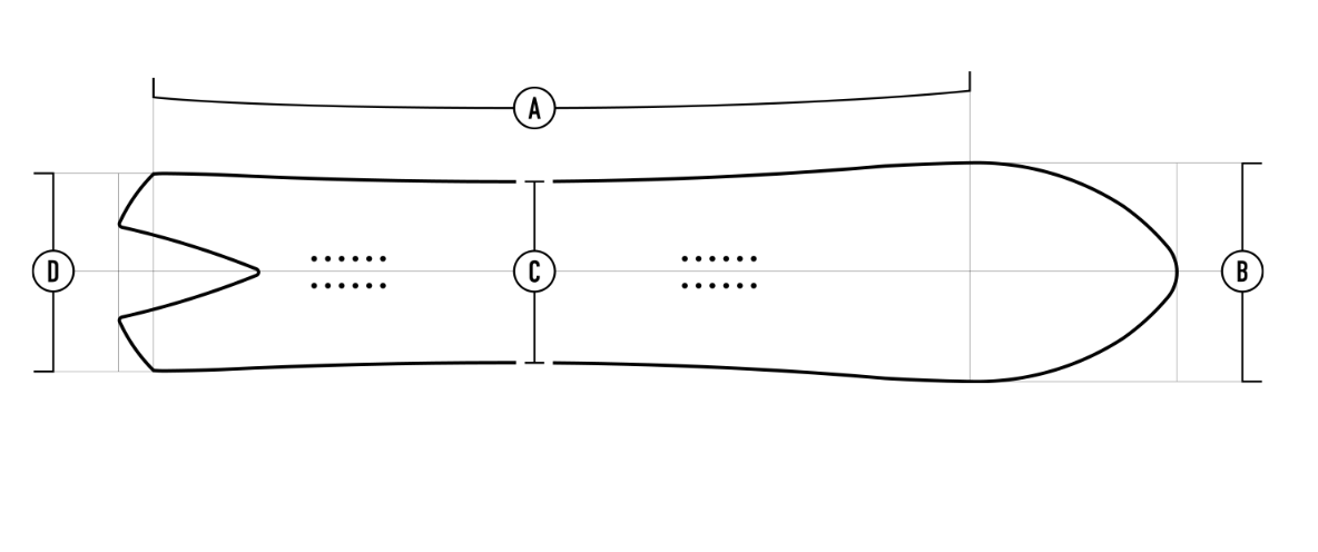 Directional Tapered (Swallowtail) - a distinct directional shape with wide nose, taper and swallowtail. The tail naturally sinks into powder for extra float and faster turns, and on groomers the wide outline gives you super stability and room to lay deep.