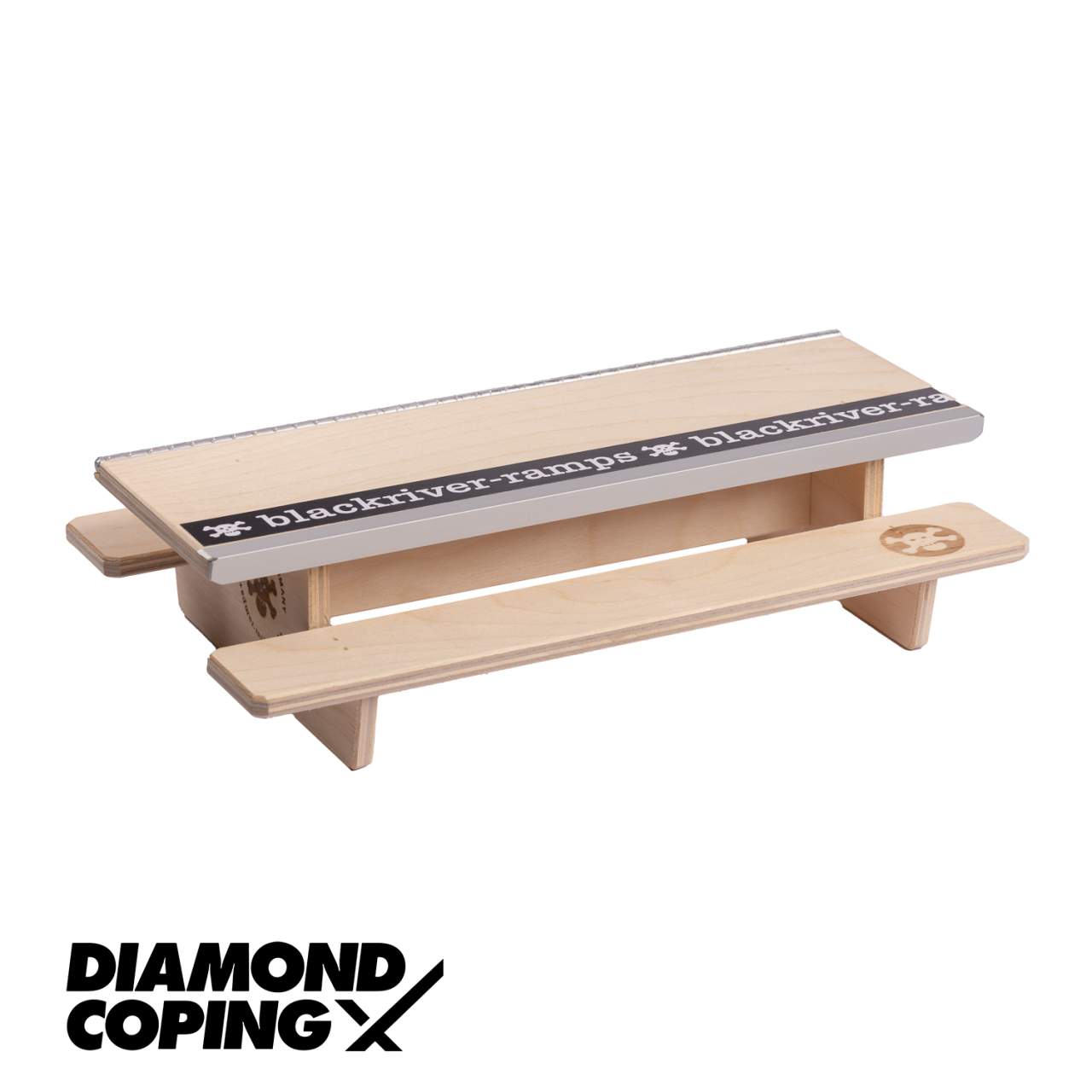 The Blackriver Linehan Pro 2 is Jay Linehan's signature fingerboard obstacle: a wide manual pad with ledge (brick coping), a steep bench and wallride option. Made for fast, low lines and cheeky combos.