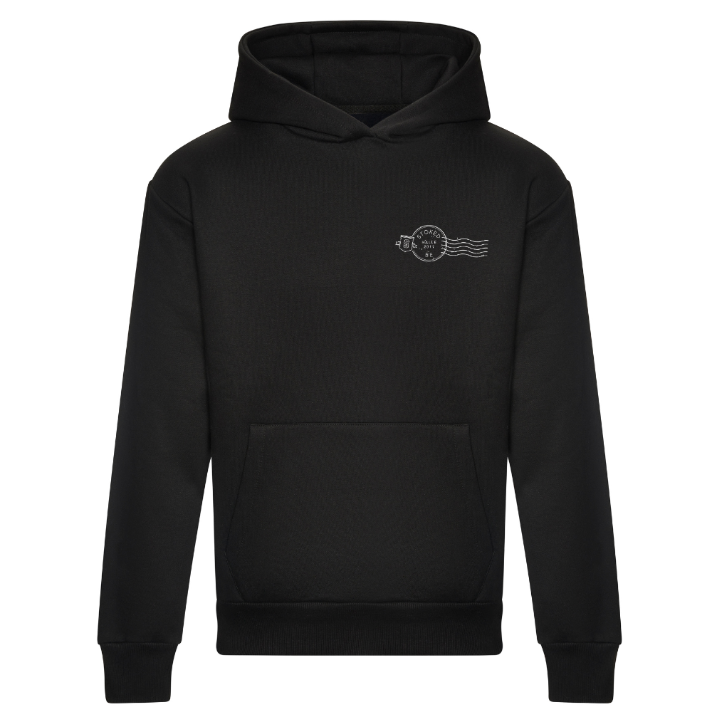 The Greetings From Stoked skate Hoodie from Stoked Board Co.'s exclusive limited edition collection pays homage to Stoked's roots. With an iconic stamp on the front representing Stoked's hometown of 1500 Halle, this hoodie brings the strength of our community and passion to your streetwear look. This design is for the people who are proud of their roots and always want to carry a piece of home with them.