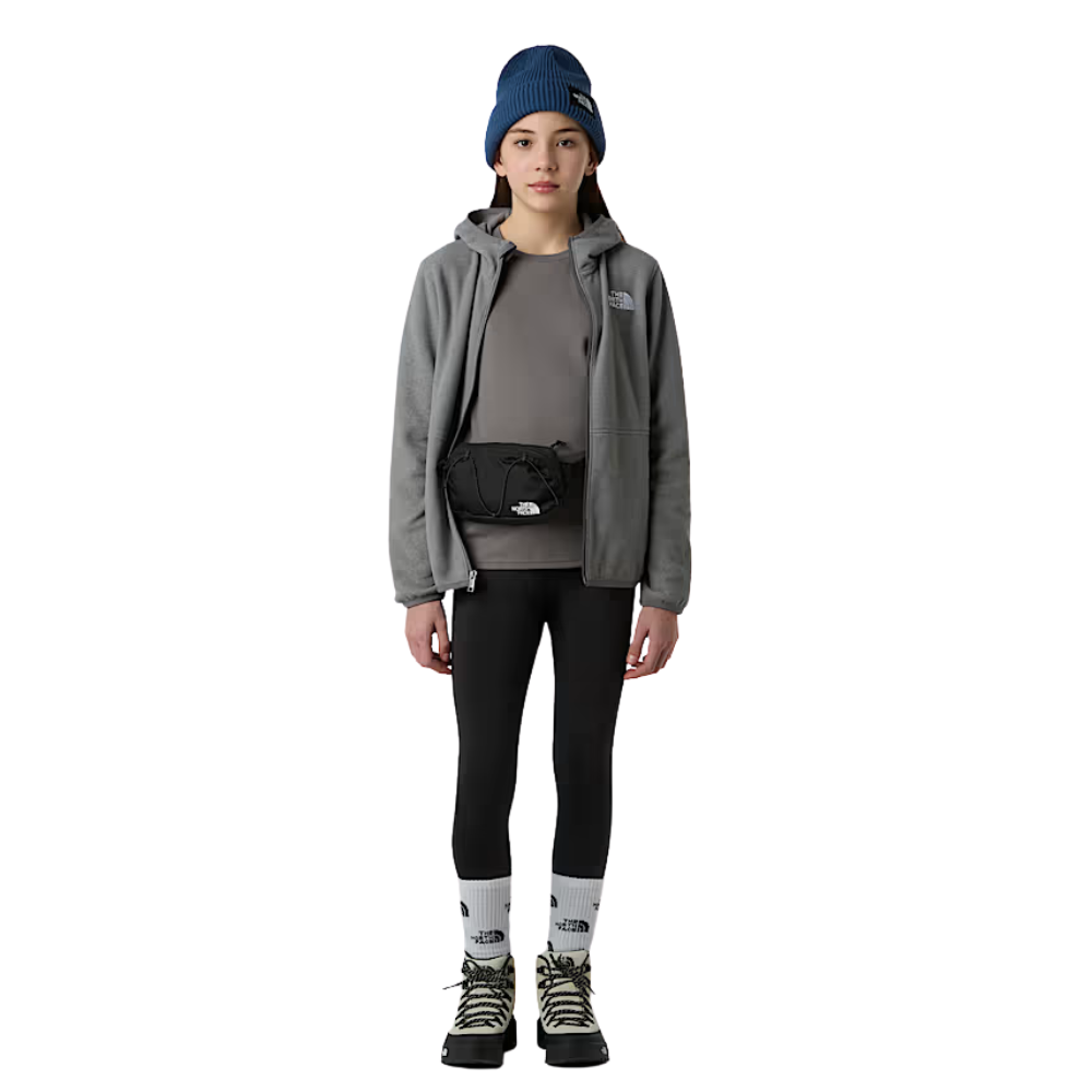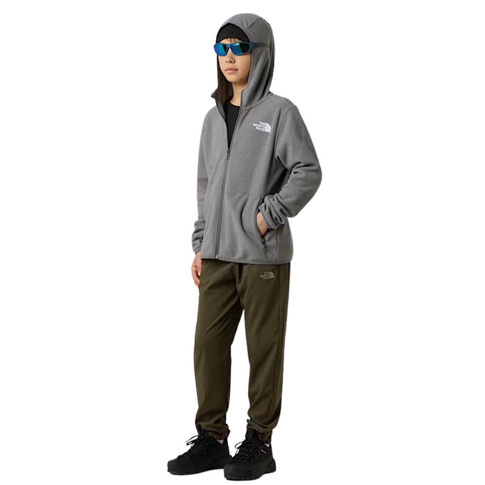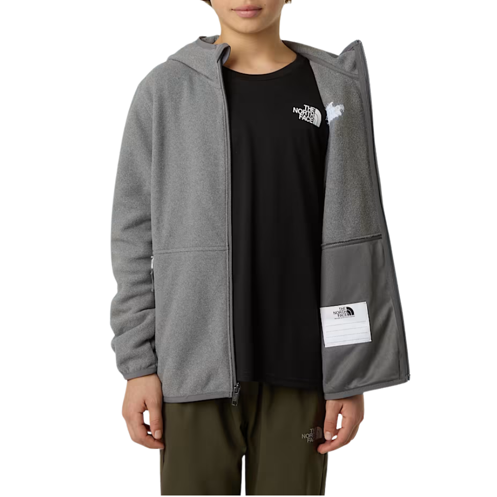 The The North Face Kids Glacier Full Zip Fleece Jacket in Mid Grey Heather is a super versatile fleece for young adventurers - ideal for school days, forest outings or winter hiking.