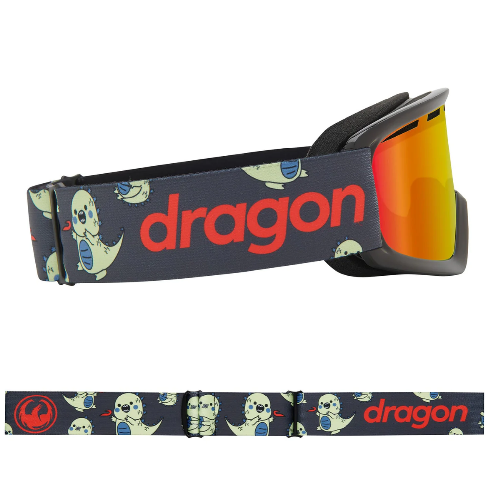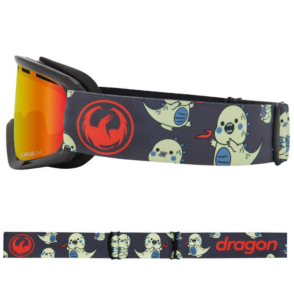 The Dragon Lil D Lil Kaiju LumaLens Red Ionized Snowboard Goggles are specially designed for young rippers with great style. With its cool Kaiju print and high-contrast lens, you'll always be ready for action - from blue slopes to powder-filled forests.