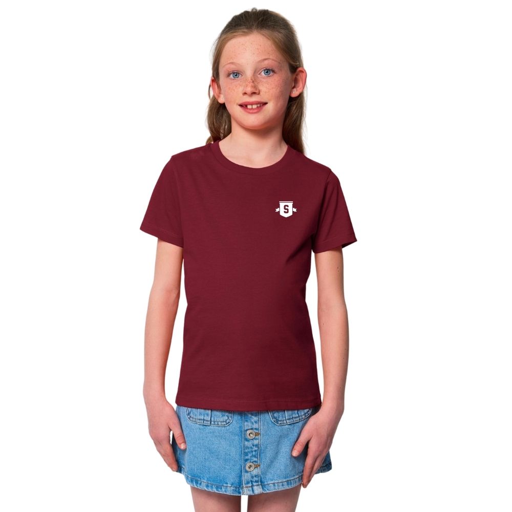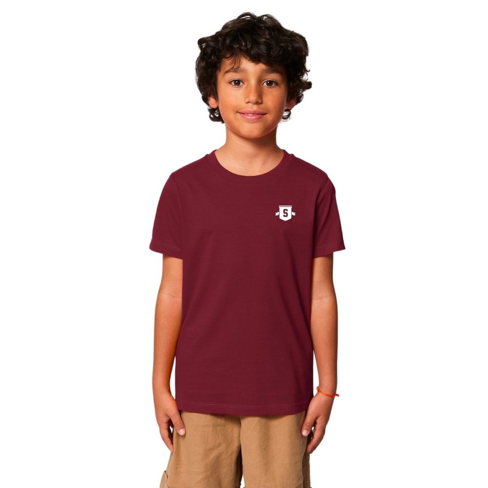 With the Kids Mini Shield T-Shirt Burgundy from Stoked Board Co represent your favorite board brand with classy style. The Stoked Shield logo subtle on the chest shows how hyped you are and gives a nice contrast on the T-shirt. The reinforcing band at the neckline and wide double stitching complete this T-shirt.