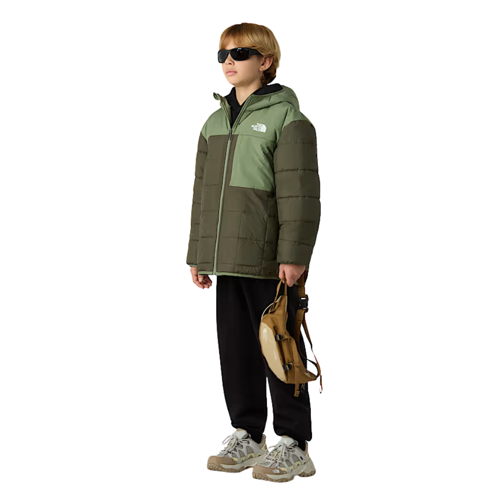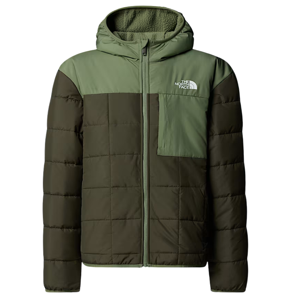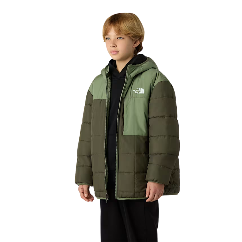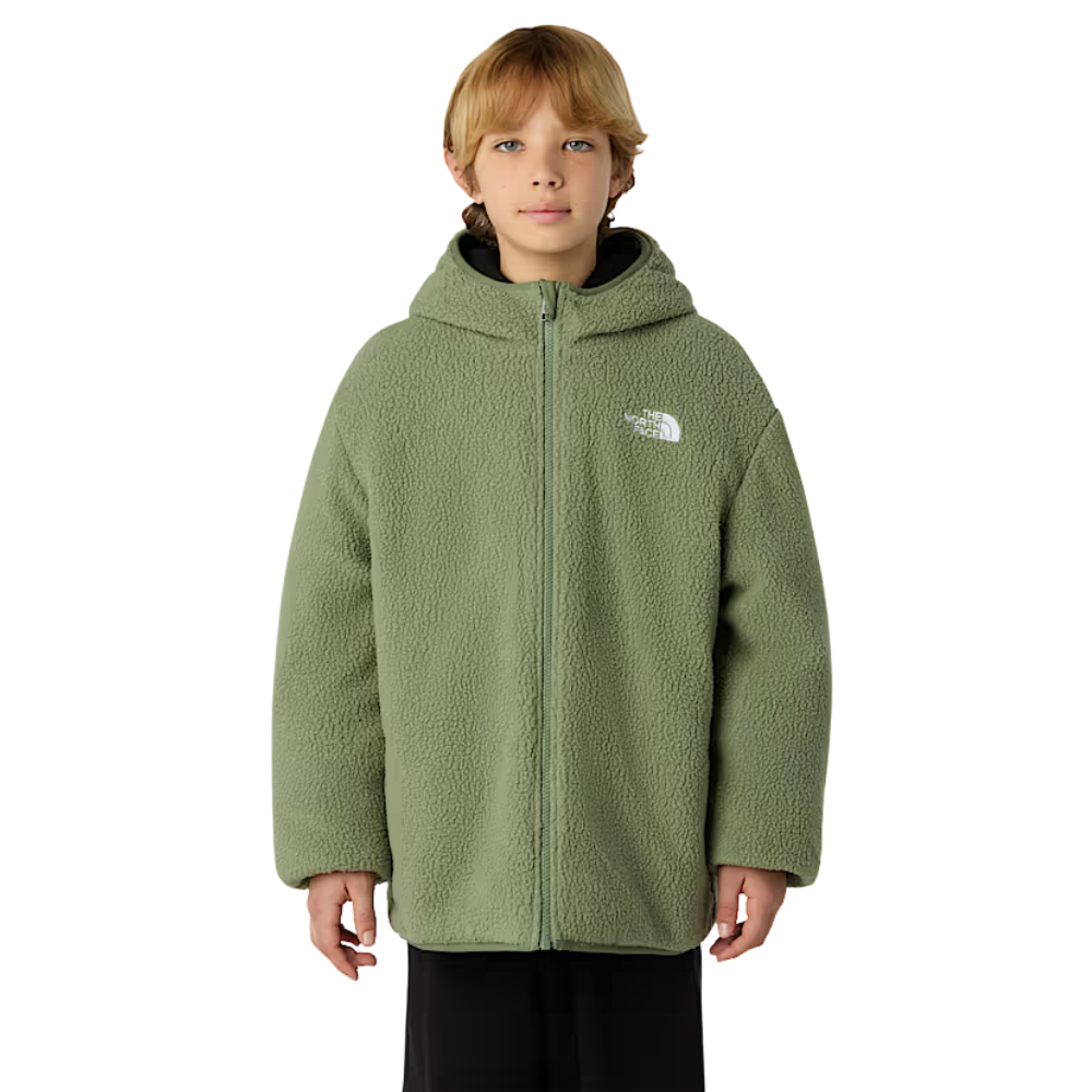 The Kids Reversible Shasta Full Zip Jacket in the color New Taupe Green from The North Face is a multifunctional jacket for kids who want to combine style, comfort and warmth - ideal for outdoor adventures, school days or winter outings.