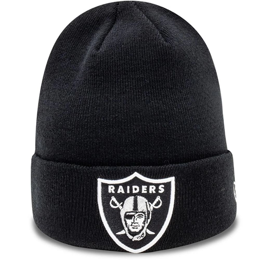 The New Era Las Vegas Raiders Essential Cuff Beanie Black is a classic, finished in stylish black and featuring the famous Raiders logo on the front. The authentic look is completed with the New Era flag, also in white, on the left side of the wearer.