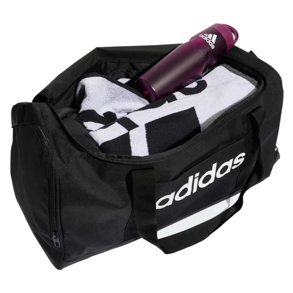 The Adidas Linear Duffel Bag Medium is a versatile and spacious bag that helps you keep your belongings neat and organized on the go. With a capacity of 39.75 liters, this duffel offers plenty of storage space, including a separate shoe compartment and multiple zipper pockets. The adjustable shoulder strap and padded handles make for comfortable carrying. Made with at least 50% recycled materials for a more sustainable choice.