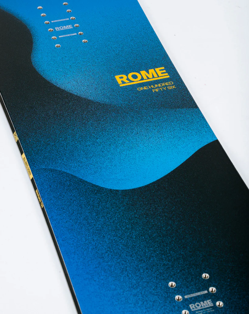 All-Mountain|Freestyle - This Freestyle All-Mountain snowboard from Rome is a versatile snowboard suitable for all-mountain exploration. Thanks to the combination of the stable all-mountain characteristics and the flexibility in nose and tail also reinforced by a twin shape, this board is perfect for the adventurous snowboarder.