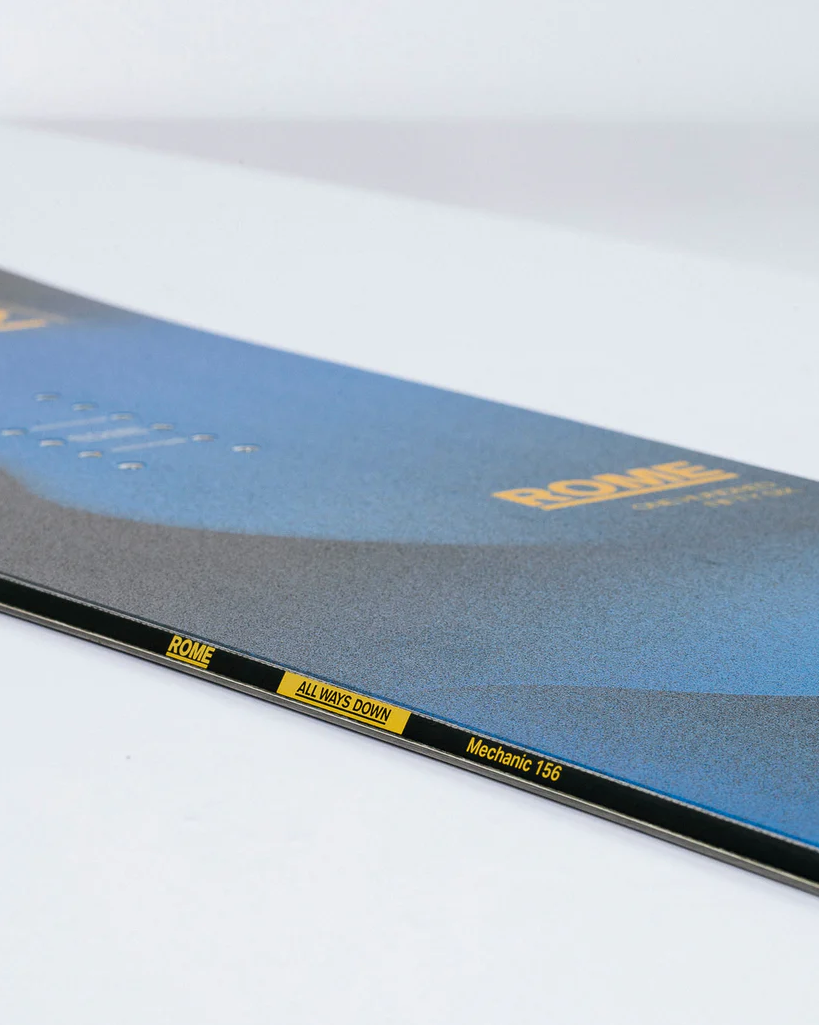 The Rome Mechanic Snowboard is all-new for 25/26 and ready to deliver progression and fun from your first drop-in to your last run. With a mellow flex, True Twin shape and Twin Diamond 3D profile, this board feels effortless and forgiving. Whether you're picking sidehits, linking turns or just building confidence on the mountain, the Mechanic lets you ride with ease and style.