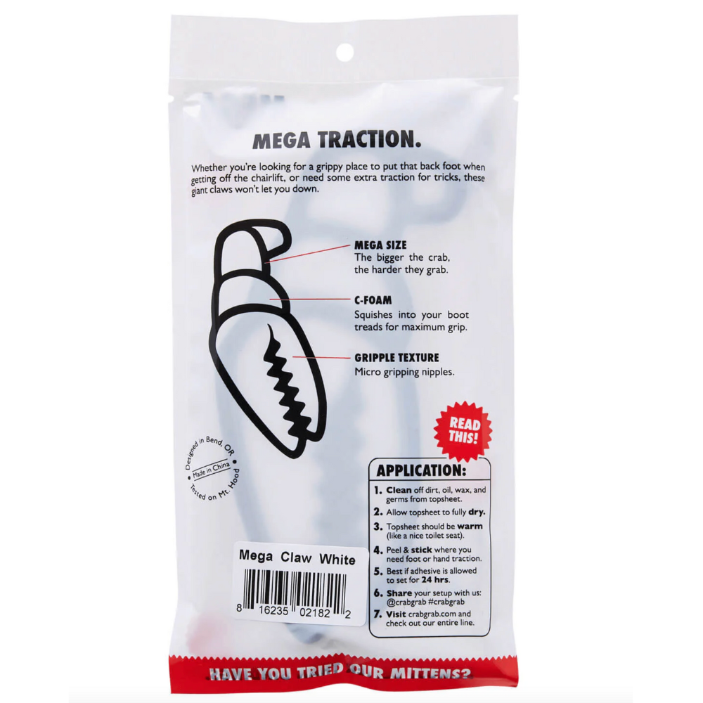 The Crab Grab Mega Claw Black/White provides all the traction you need when you take your foot out of the binding. A classic in a fun style.