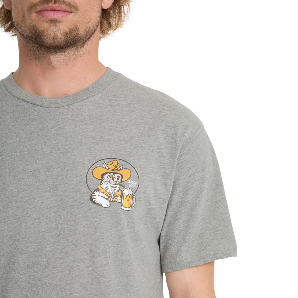 The Volcom Meowdy T-Shirt Heather Grey is a fun tee with a playful graphic and a laid-back vibe. The Heather Grey color keeps it clean and easy to combine, while the Meowdy print provides a nod to Volcom attitude.
