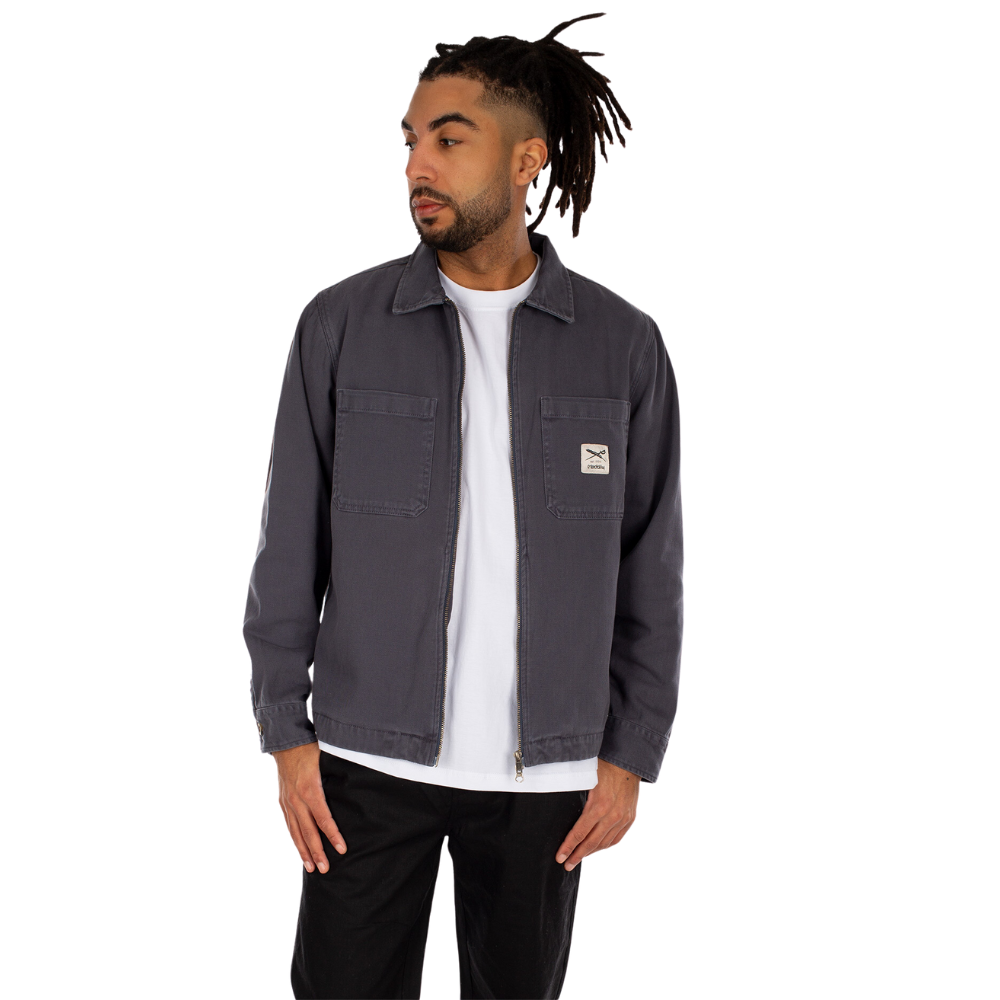 The Iriedaily Nanolo Shirt Jacket Dark Steel lets you join the workwear trend in style! Crafted from sturdy organic cotton twill, this vegan shirt jacket features a collar, two large chest pockets and a metal zipper closure. The unique look of this fairly produced jacket is achieved through a special pigment wash.