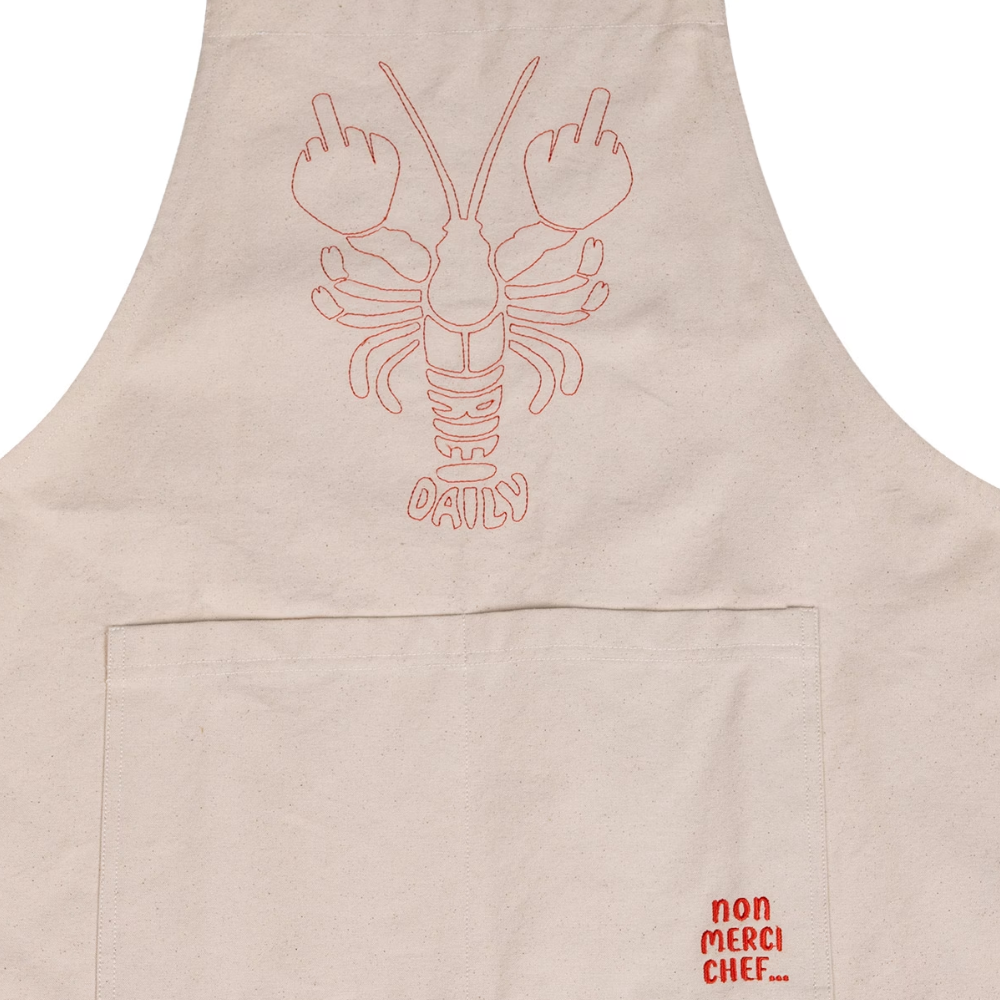 The Iriedaily Non Merci Chef Apron Undyed is a stylish kitchen apron with a clean, natural undyed look and a playful Non Merci graphic. Perfect for in the kitchen, behind the BBQ or during creative sessions - with that signature Iriedaily wink.