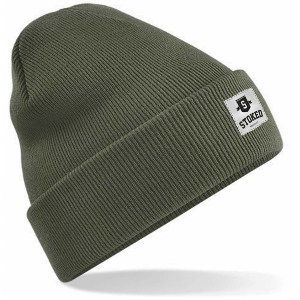 The Stoked Original Cuffed Shield Beanie Olive Green is a great boarder style beanie. Whether you're in the snow or on the streets, the double layer knit and 100% acrylic fabric will keep you warm. Show that you're a boarder and represent the Stoked vibe.
