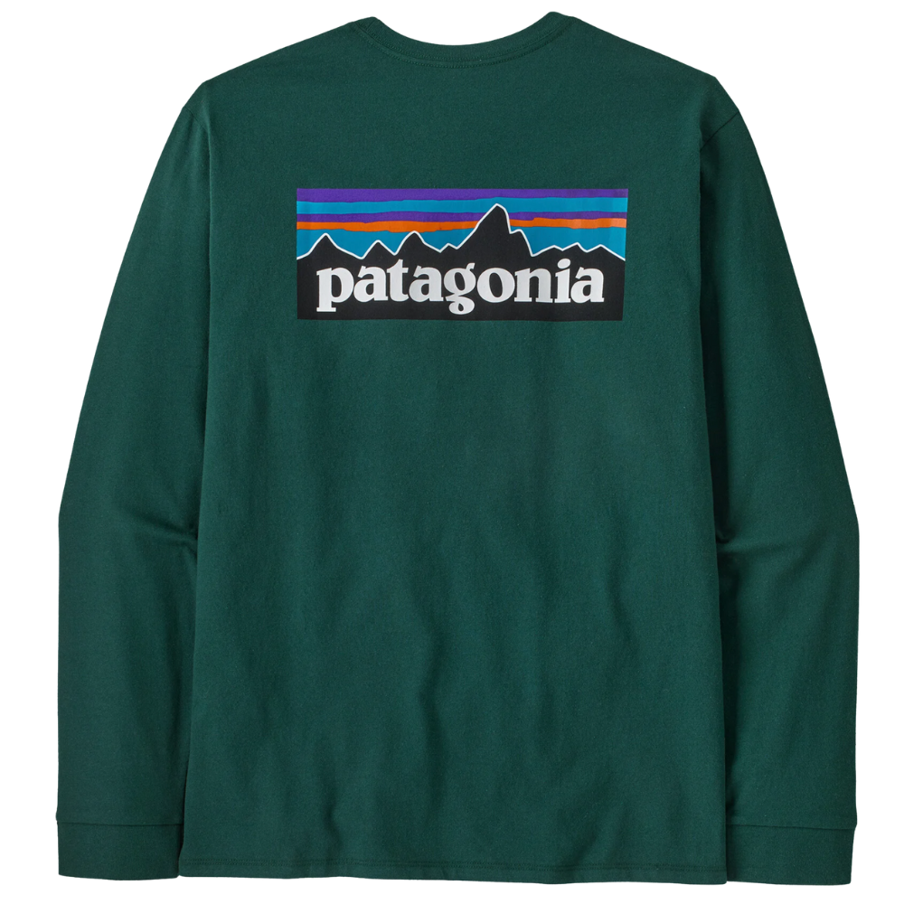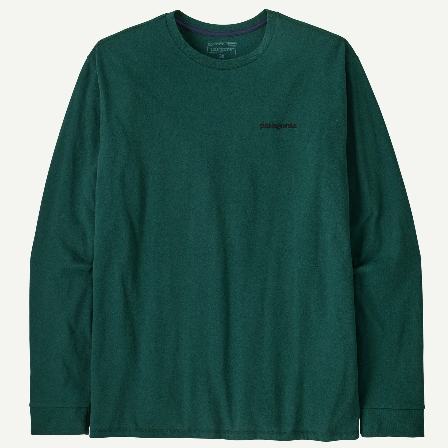 The Patagonia Men's Long-Sleeved P-6 Logo Responsibili-Tee® combines classic design with sustainable materials. This longsleeve is made from recycled cotton scraps and plastic bottles, reducing its reliance on virgin resources. The fit is relaxed and versatile, with a comfortable crewneck and straight hem. Made in a Fair Trade Certified™ factory.