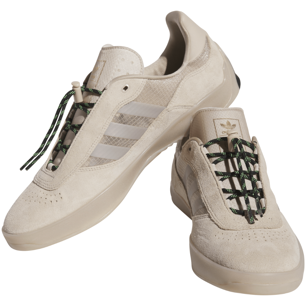The Adidas Puig Beige/Beige/Black will make you feel like you're walking on clouds thanks to the contoured Adiprene insole and high-quality EVA midsole. This Lucas Puig pro model allows you to skate for hours without experiencing discomfort. Fresh comfort and longer life, that's what this sneaker stands for.