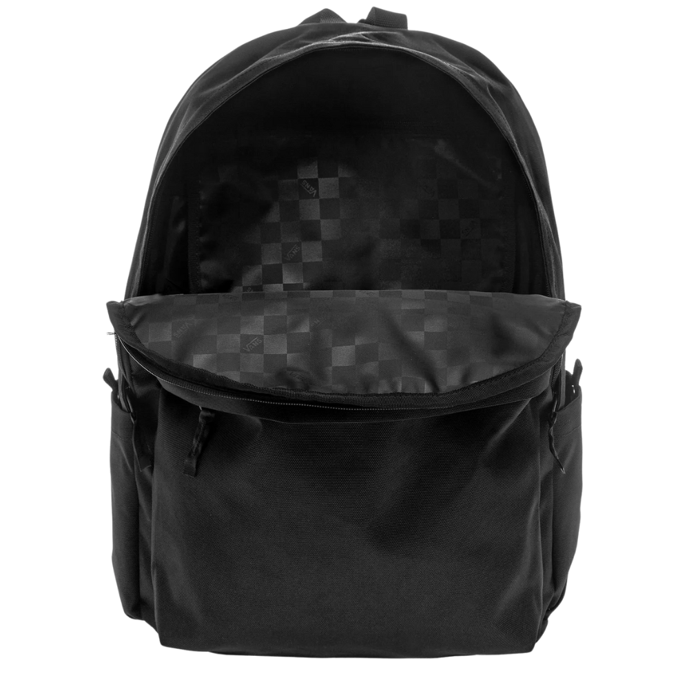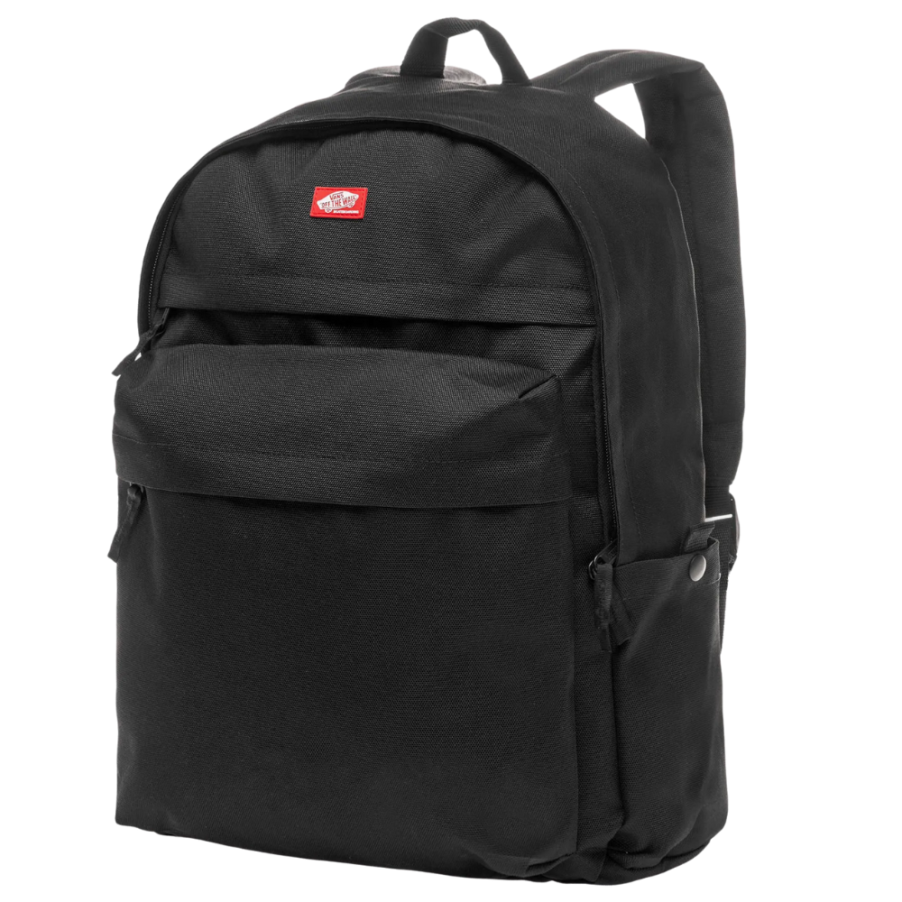 The Vans Skate All Day Backpack in black is made to go with you on all your adventures. With a 19-liter capacity, this backpack offers plenty of room for all your essentials, including a dedicated 15" laptop compartment. With multiple pockets, adjustable shoulder straps and durable construction made of 100% polyester, it's perfect for school, skate missions or just everyday use.