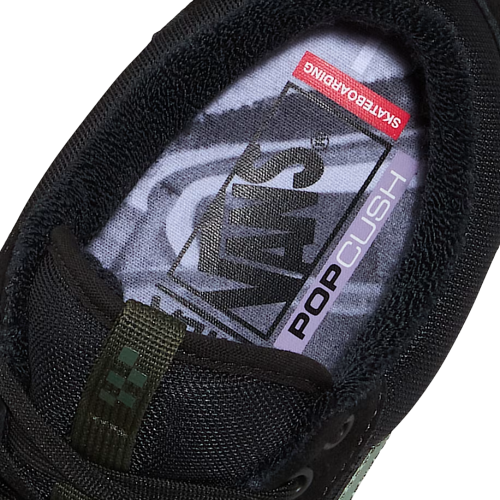 The Vans Skate Old Skool 36+ Atiba Black/Dark Green is a tribute to skate photography legend Atiba Jefferson. This limited edition Sk8 puts a fresh spin on the classic Old Skool with premium details and extra skate performance - just the way Atiba would want it.