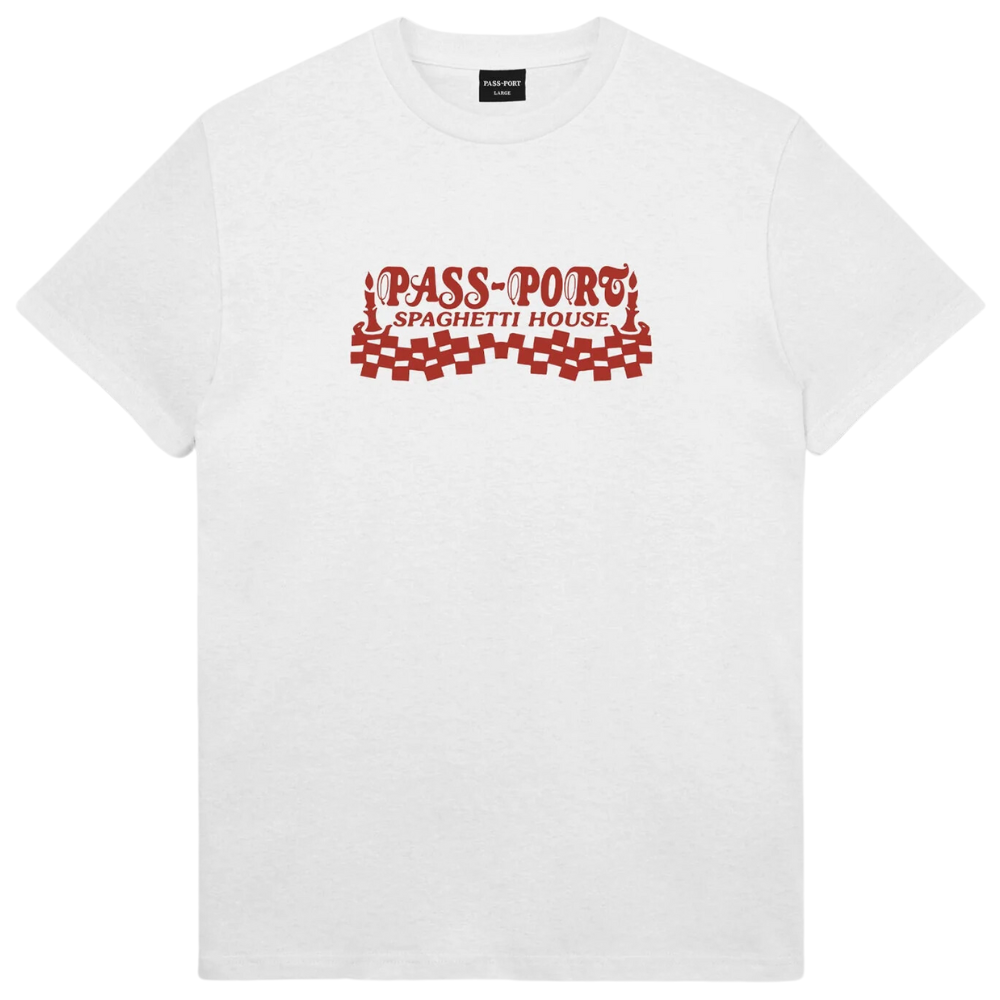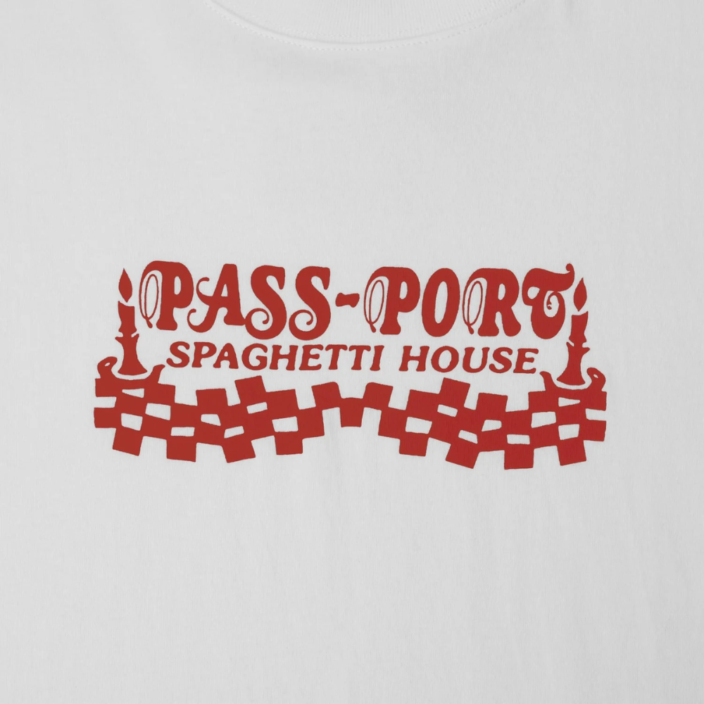 Enhance your wardrobe with the Pass~Port Spag House T-shirt White, featuring a screen print on the front, perfect for everyday wear.