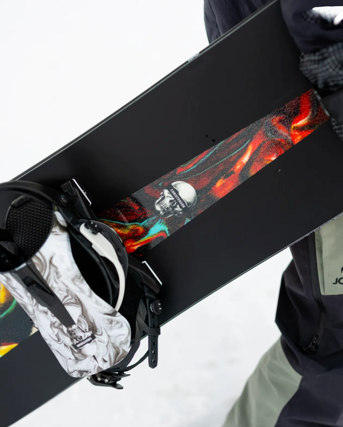 The Jones Storm Chaser 2025 Snowboard is a powder-hungry swallowtail board designed by surf shaper Chris Christenson that floats like a dream and glides effortlessly through low angle terrain on the deepest of days. It's a phenomenal pow board because the Surf Camber profile pops the nose up as you lean into the fall line, but it's also an epic spring carving board because it's super wide so you don't suffer from toe or heel drag.