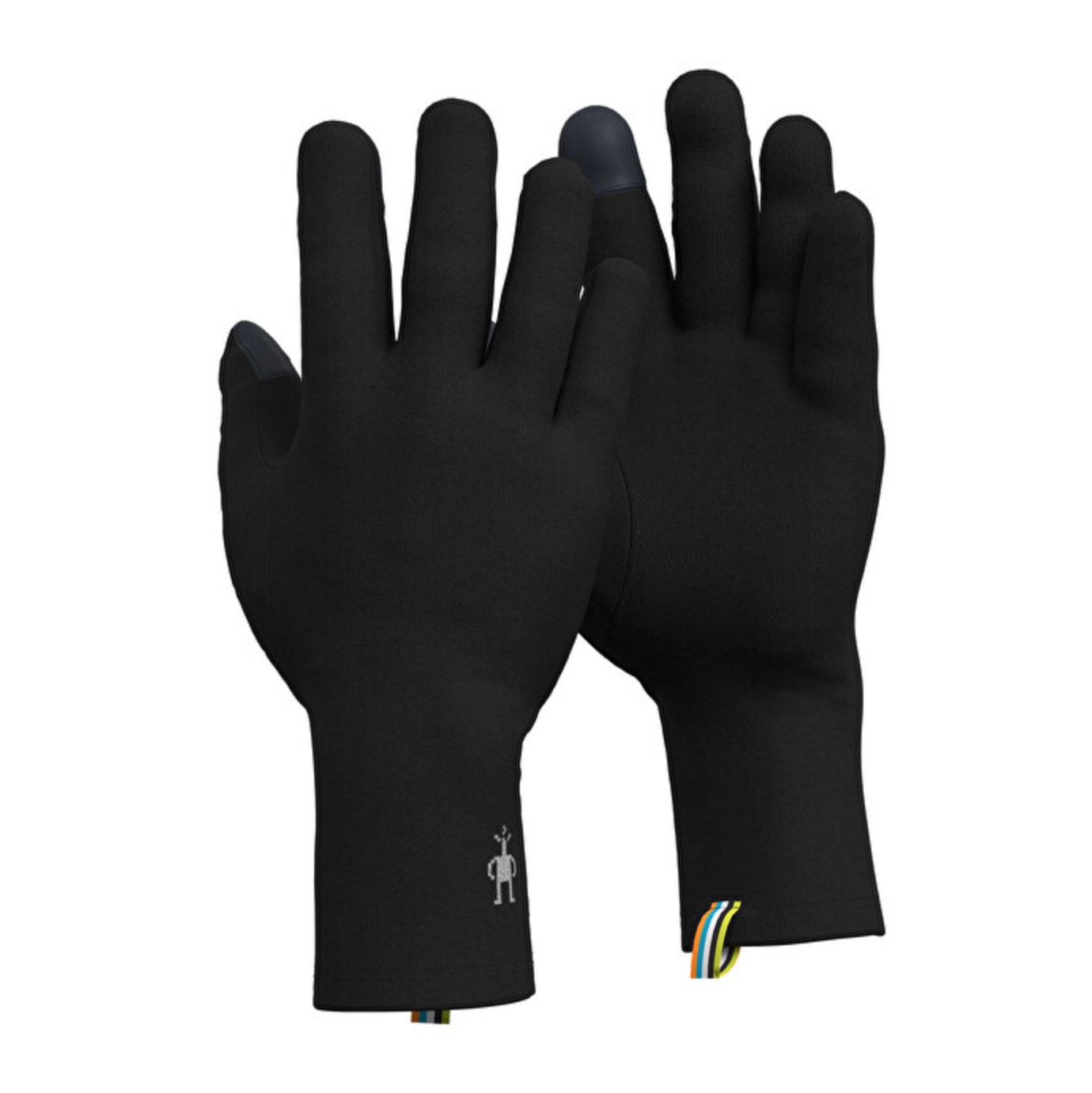 Made from 100% merino wool knit interlock material, these Smartwool Thermal Merino gloves in black offer everything you need: enhanced comfort, breathability, thermoregulation and odor resistance. And with a touchscreen-compatible thumb and index finger, you can take as many selfies as you want.
