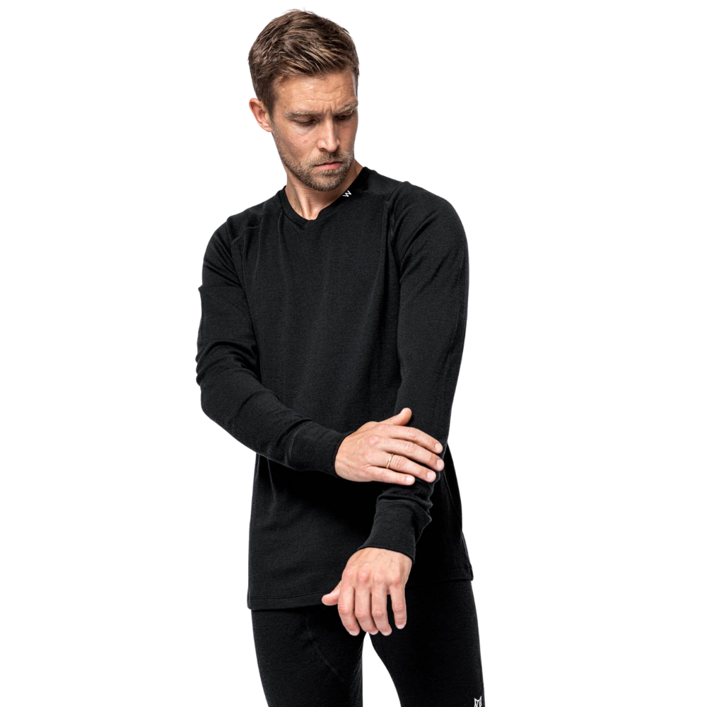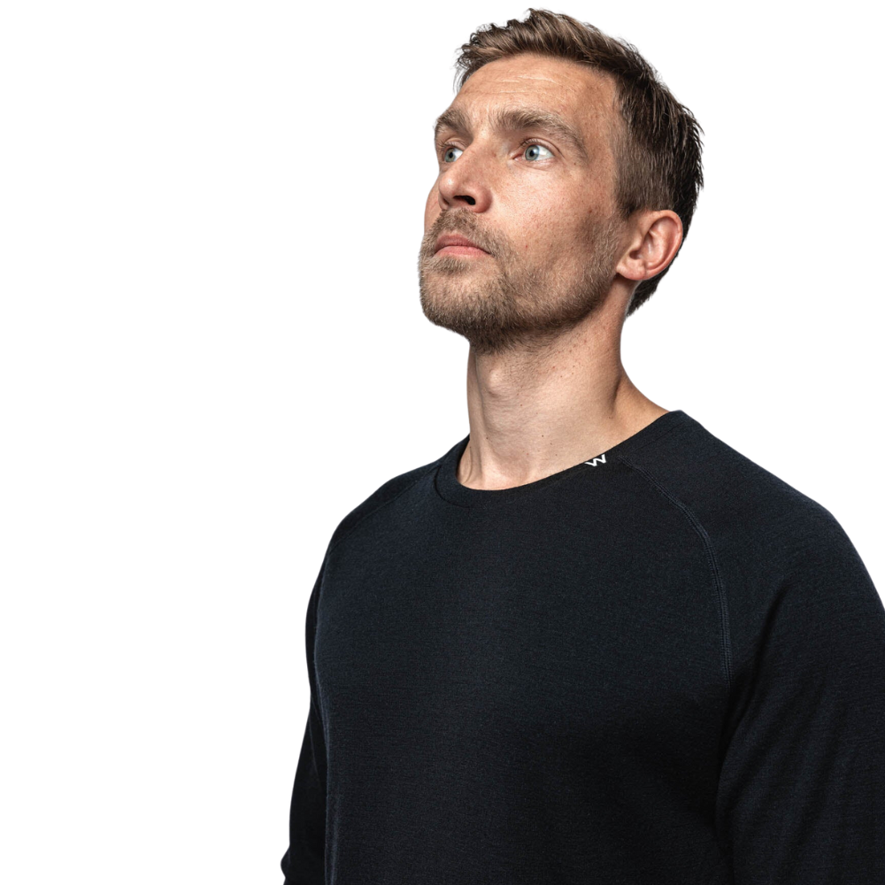 The Woolf Merino Tuv Longsleeve Crew Black goes beyond basic, regulating your upper body temperature and offering flexibility while effectively wicking away moisture. Stay comfortable and prepared in any cold or extreme conditions with this essential merino wool round neck base layer for men.
