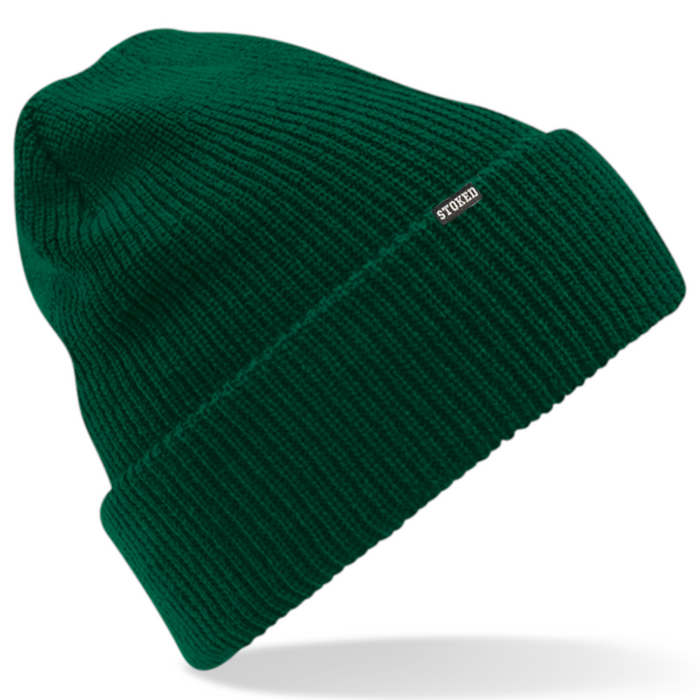 The Stoked Huntsman Beanie Bottle Green has a style all its own. With the iconic Stoked Board Co text logo, everyone instantly knows what you stand for. Both in the snow and on the streets, it keeps you nice and warm thanks to the double layered knit. Represent the ultimate stoked vibe and show that you are a boarder cut from the right cloth with this Stoked Vintage beanie.