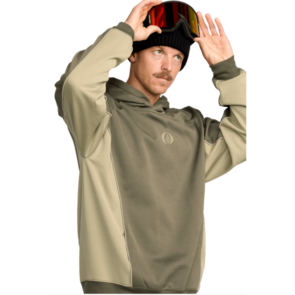The Volcom Vital Hydro Hoodie Military is made for action-whether you're on your board or just chilling after your session. The hydrophobic material keeps you dry while keeping you shining in style.