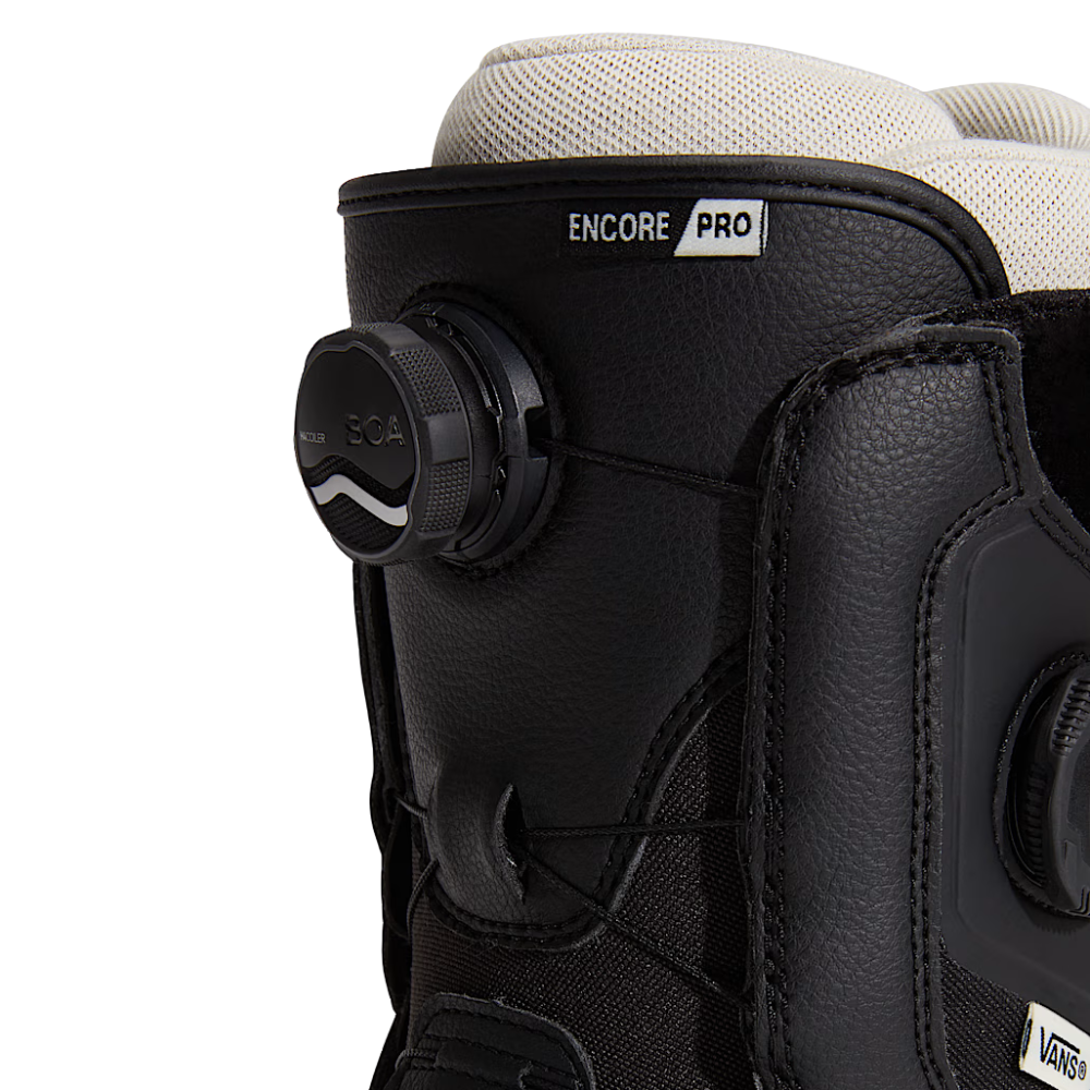 The Vans Womens Encore Pro Black/Marshmallow Snowboardboots are a best seller, all-around snowboard boot. A great fit, versatile performance for both freeriding and freestyle and a Dual Boa System. Highly recommended.
