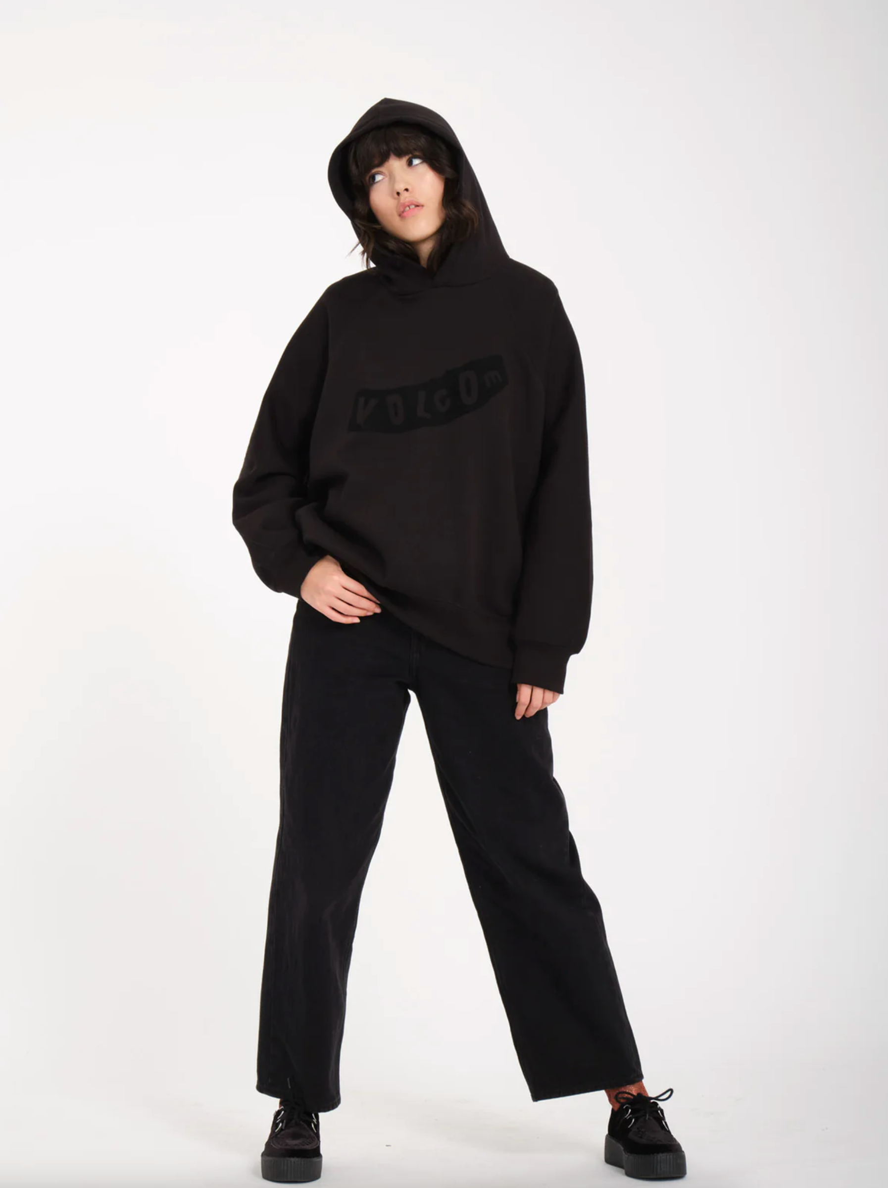 The Volcom Womens Pistol Hoodie Black is a great, deep black hoodie.