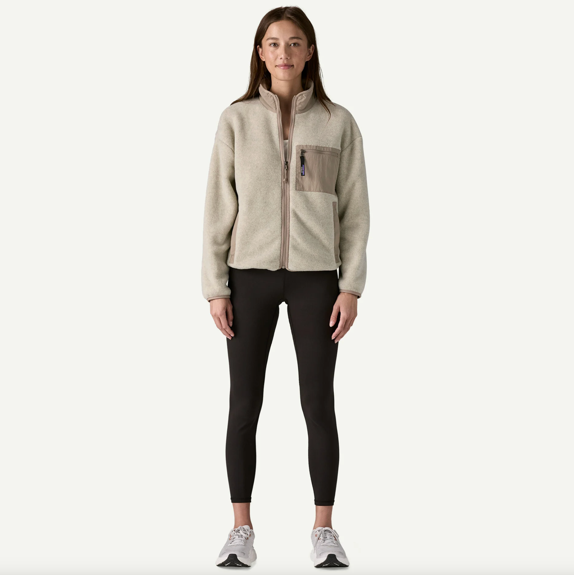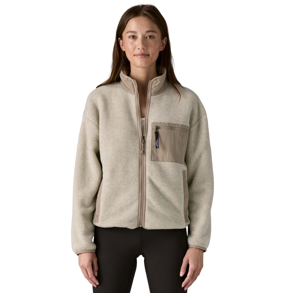 The Patagonia Womens Synchilla Fleece Jacket Oatmeal Heather/ Seabird Grey is a relaxed jacket with collar and full zipper, made of Synchilla® 100% recycled polyester and double-sided fleece to keep you warm. Made in a Fair Trade Certified™ factory.