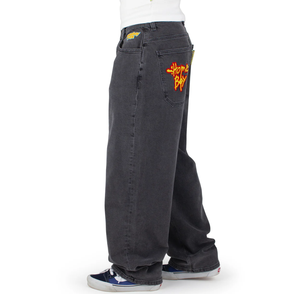 The vintage vibe is completed by the authentic details: the multi-colored "homeboy x-tra" embroidery below the waistband, the Rainbow Fly-Tab, and the signature X-stitching on the back pocket. The back pockets are placed slightly lower, contributing to the relaxed, loose look of this timeless classic.