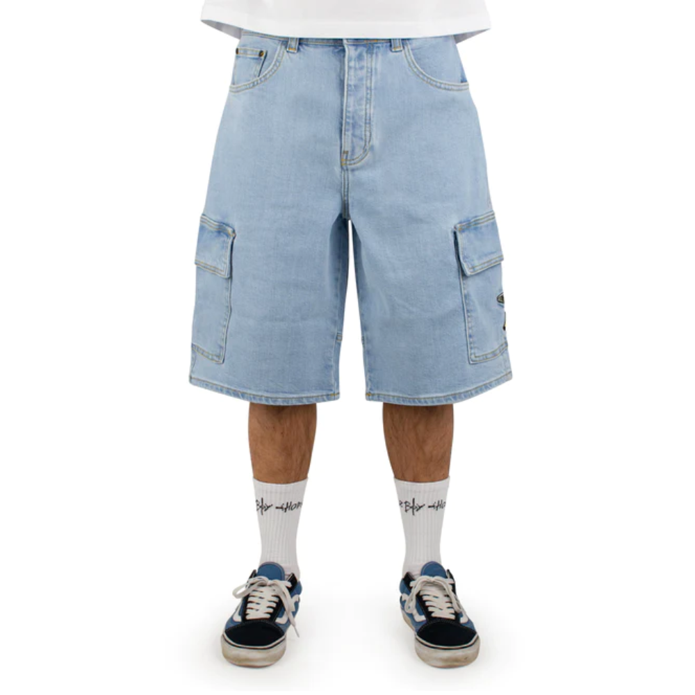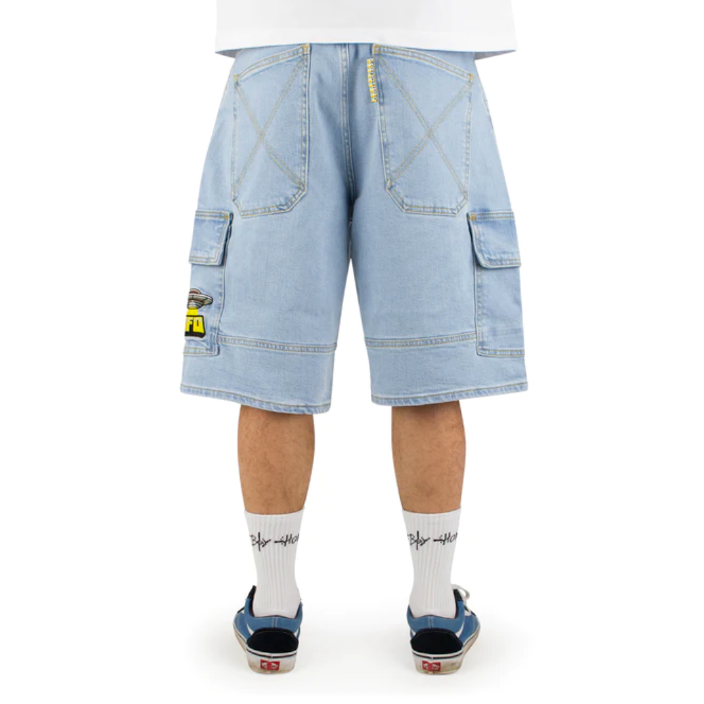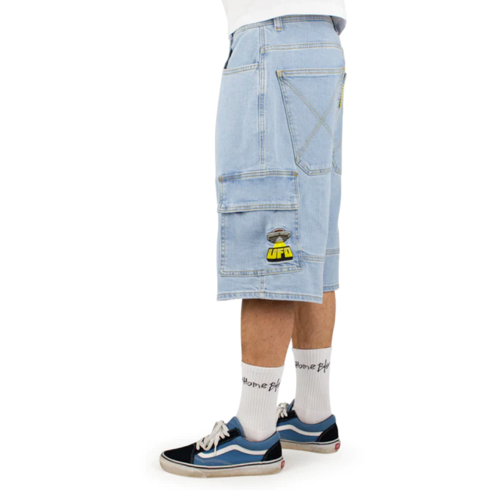 The Homeboy UFO Cargo Shorts Moon offer ample freedom of movement for hot summer days, ideal during a skate session or on your way to the beach. These shorts are a modern reinterpretation of a classic style from the '90s, featuring signature details like the "Homeboy x-tra" embroidery, the Rainbow Tab, and the X-seam on the back pockets that provide authentic OG vibes.